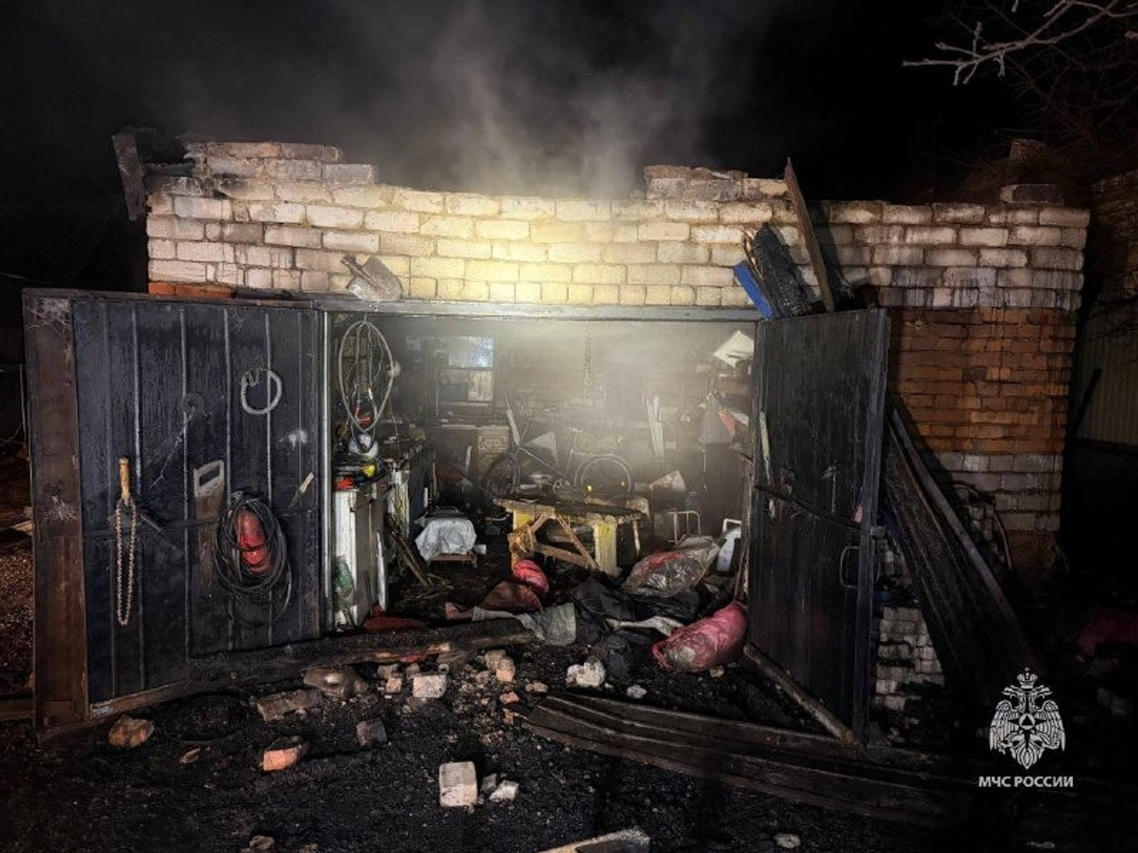 Когда пожарные подразделения прибыли на место, огонь повредил кирпичный гараж. Пожар ликвидировали огнеборцы МЧС России и добровольцы пожарной команды Никольского сельсовета.