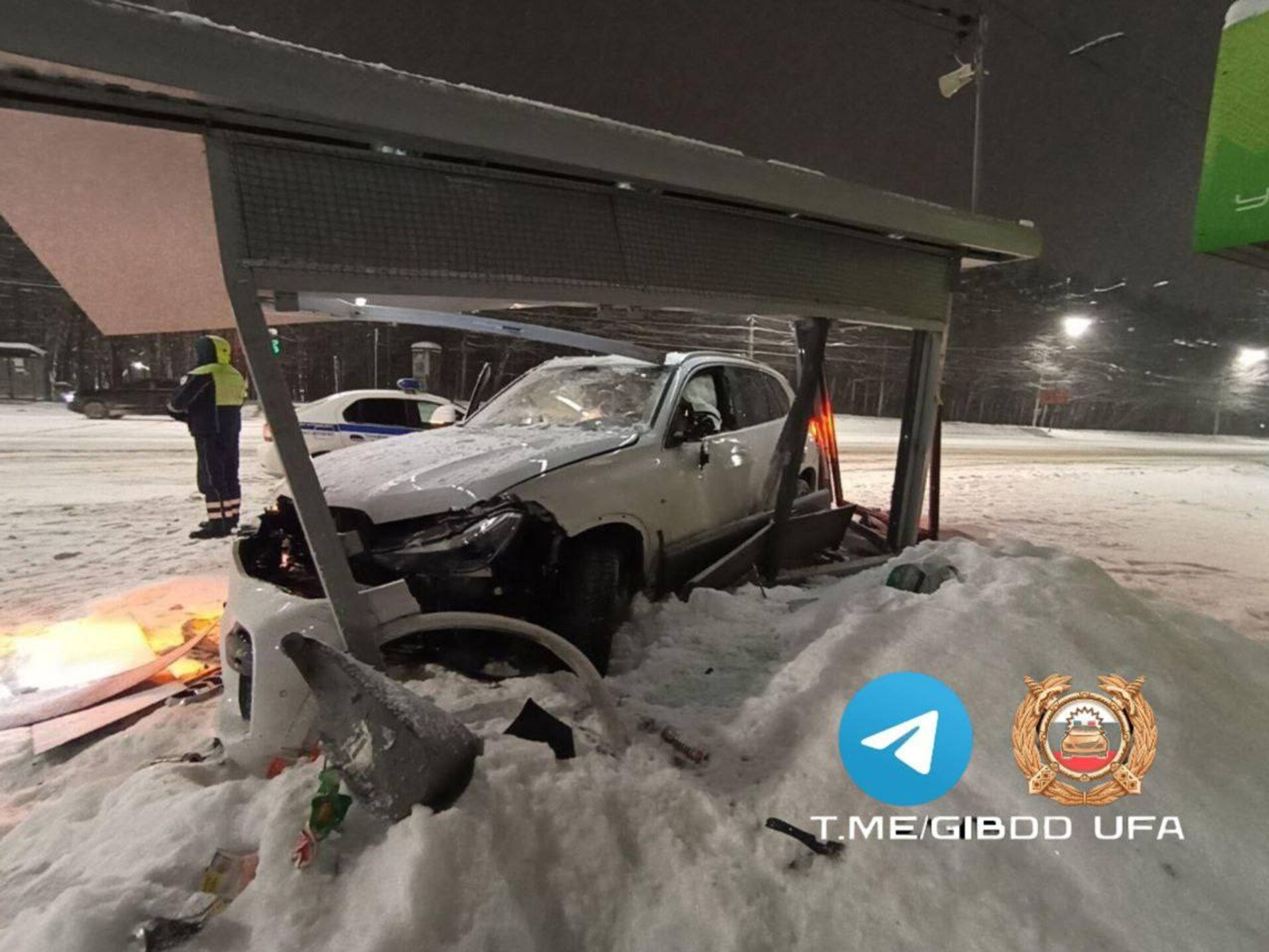 Сегодня в Уфе примерно в 4 часа утра 27-летний водитель ехал за рулём «BMW Х5» по улице Менделеева. Он не справился с управлением и наехал на остановочный павильон.