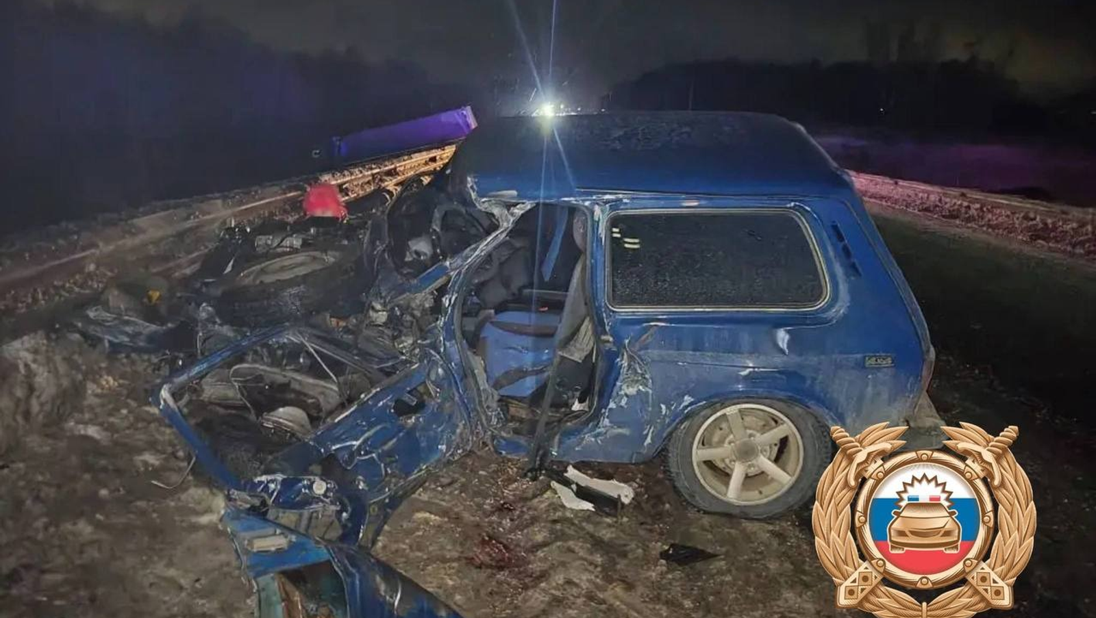 По предварительной информации, накануне в одиннадцатом часу вечера на 1297 км автодороги М5 «Урал» 21-летний водитель за рулем «Лады Нива» выехал на полосу встречного движения и допустил столкновение со встречным «КамАЗом».