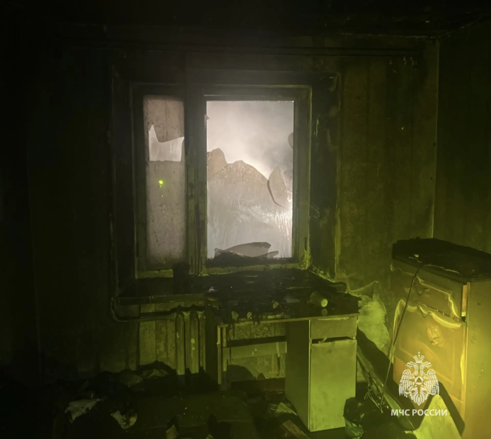 Пожар потушен совместно со специалистами объектовой пожарной охраны. В результате пожара сильно закопчена сама квартира, в которой начался пожар, и стены в подъезде с 3 по 5 этажи.