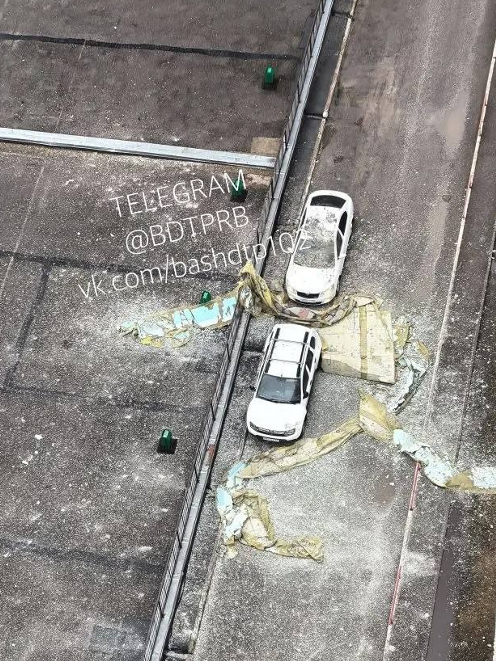 Также очевидцы в соцсетях сообщают о том, что на улице Набережной реки Уфы с жилого дома №11/2 ветром отрывает облицовку, которая падает на припаркованные автомобили.