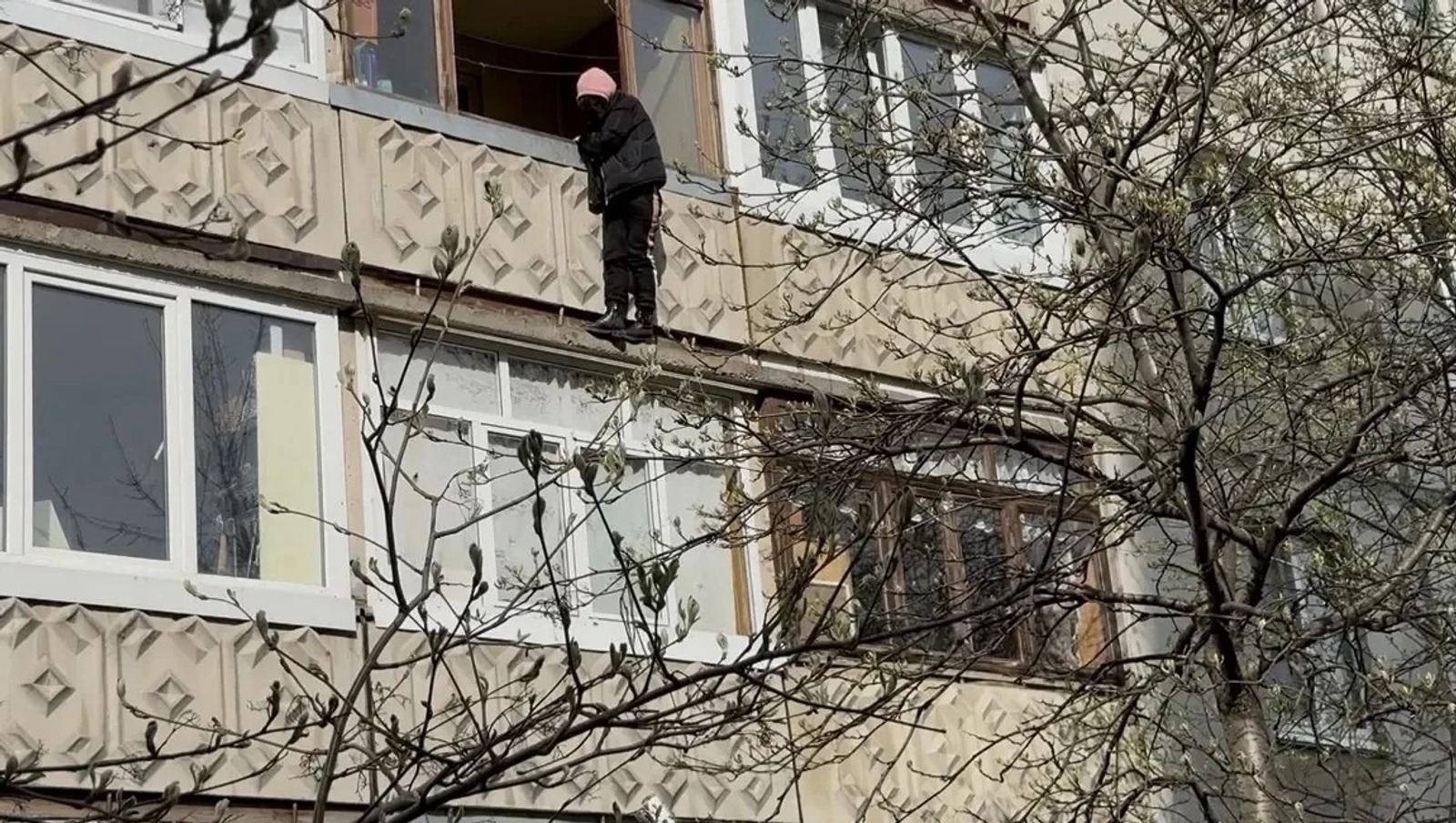 Очевидцы позвонили в экстренные службы города и сообщили, что на уровне третьего этажа одного из жилых домов с балкона свисает женщина.