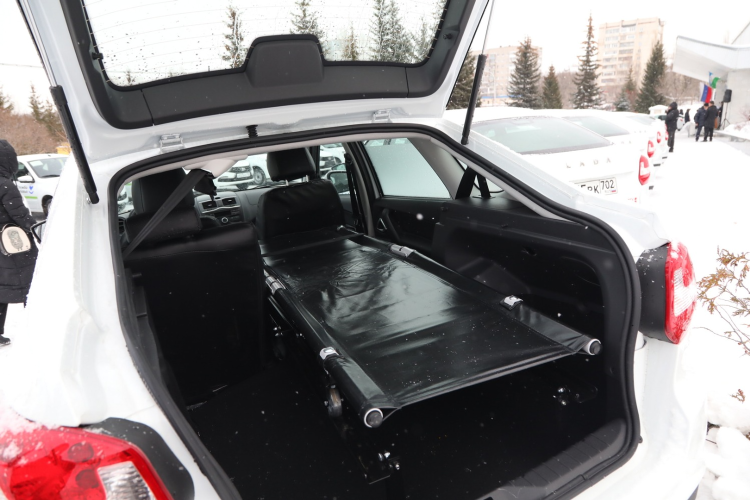 По информации пресс-службы минздрава Башкирии, современные машины российского производства Lada Granta Лифтбек являются многофункциональными. Они будут использованы для выездов фельдшеров, доставки анализов и для транспортировки пациентов. В багажнике компактно размещены складные носилки, которые при необходимости помогут быть использованы для доставки лежачего пациента в медицинское учреждение. Для этого внутри салона также расположено трансформируемое приемное устройство. Эти универсальные автомобили будут удобны в использовании и в городе, и на селе.