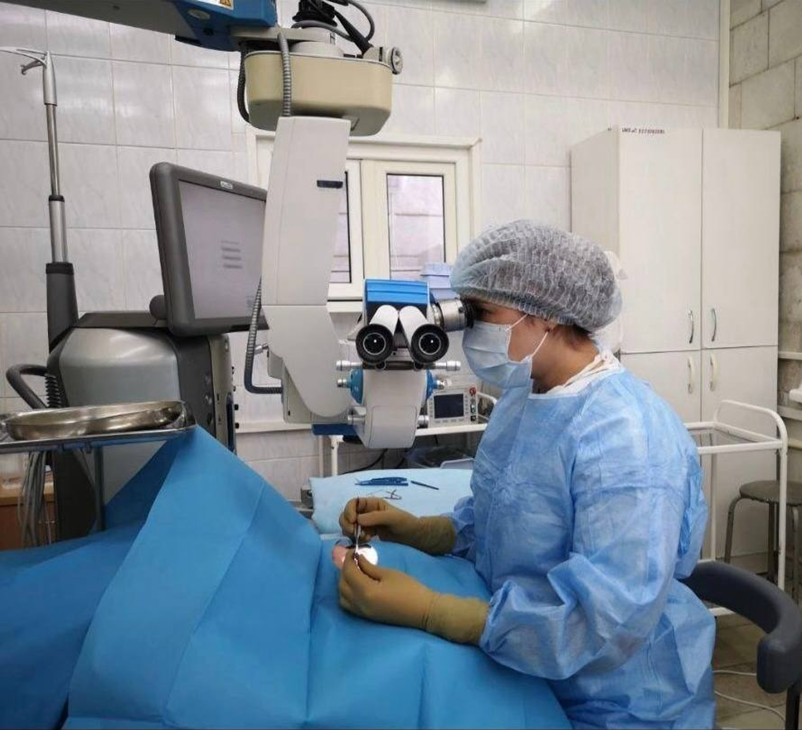 Команда офтальмологов оперативно провела сложную операцию: они закрыли язву роговицы трансплантатом. На следующий день пациентке была установлена лечебная контактная линза.