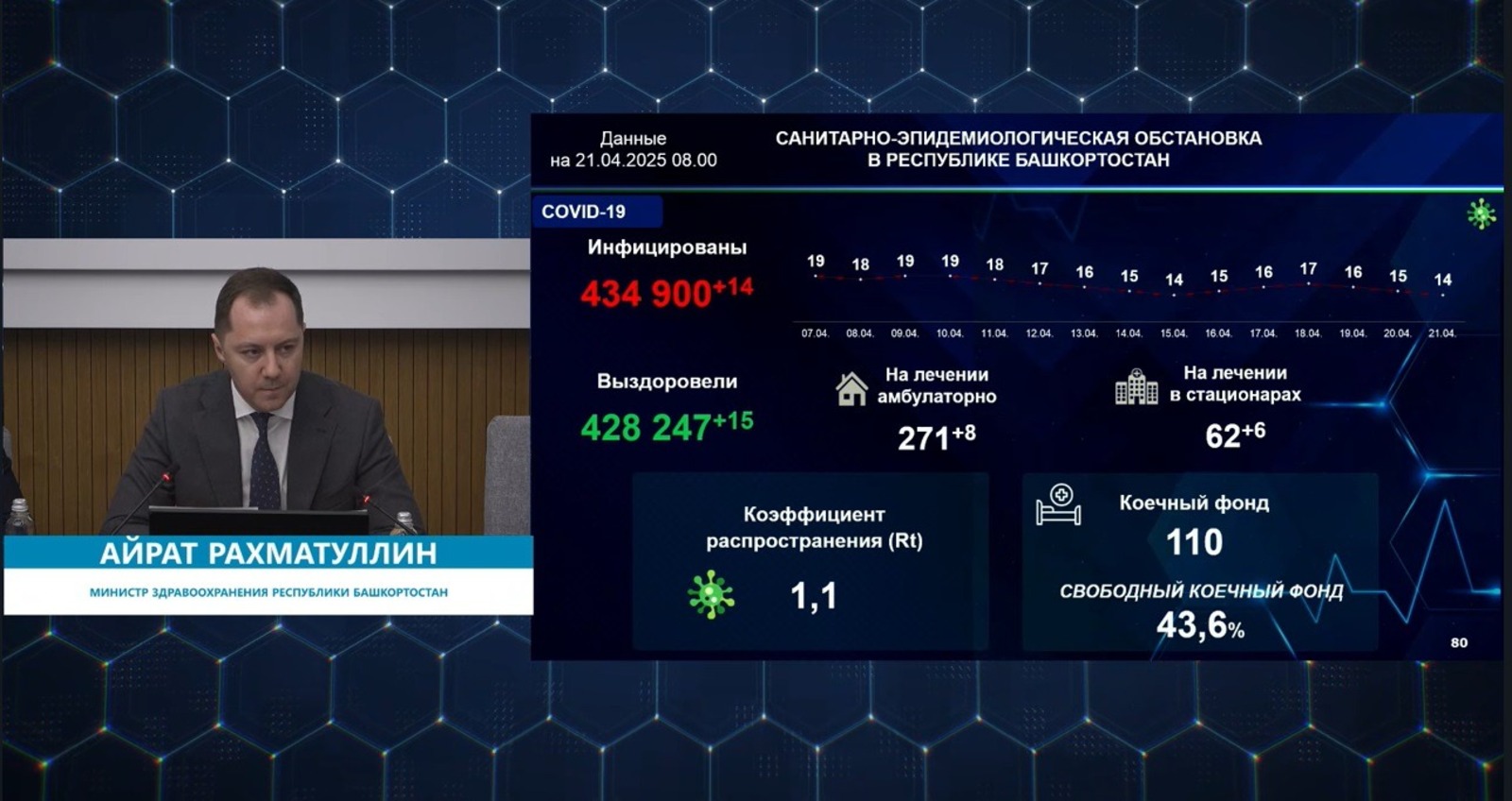 В Башкирии за минувшие сутки выявлены 14 случаев заболевания коронавирусной инфекцией. Об этом сегодня в ходе оперативного совещания правительства в ЦУРе сообщил министр здравоохранения республики Айрат Рахматуллин.