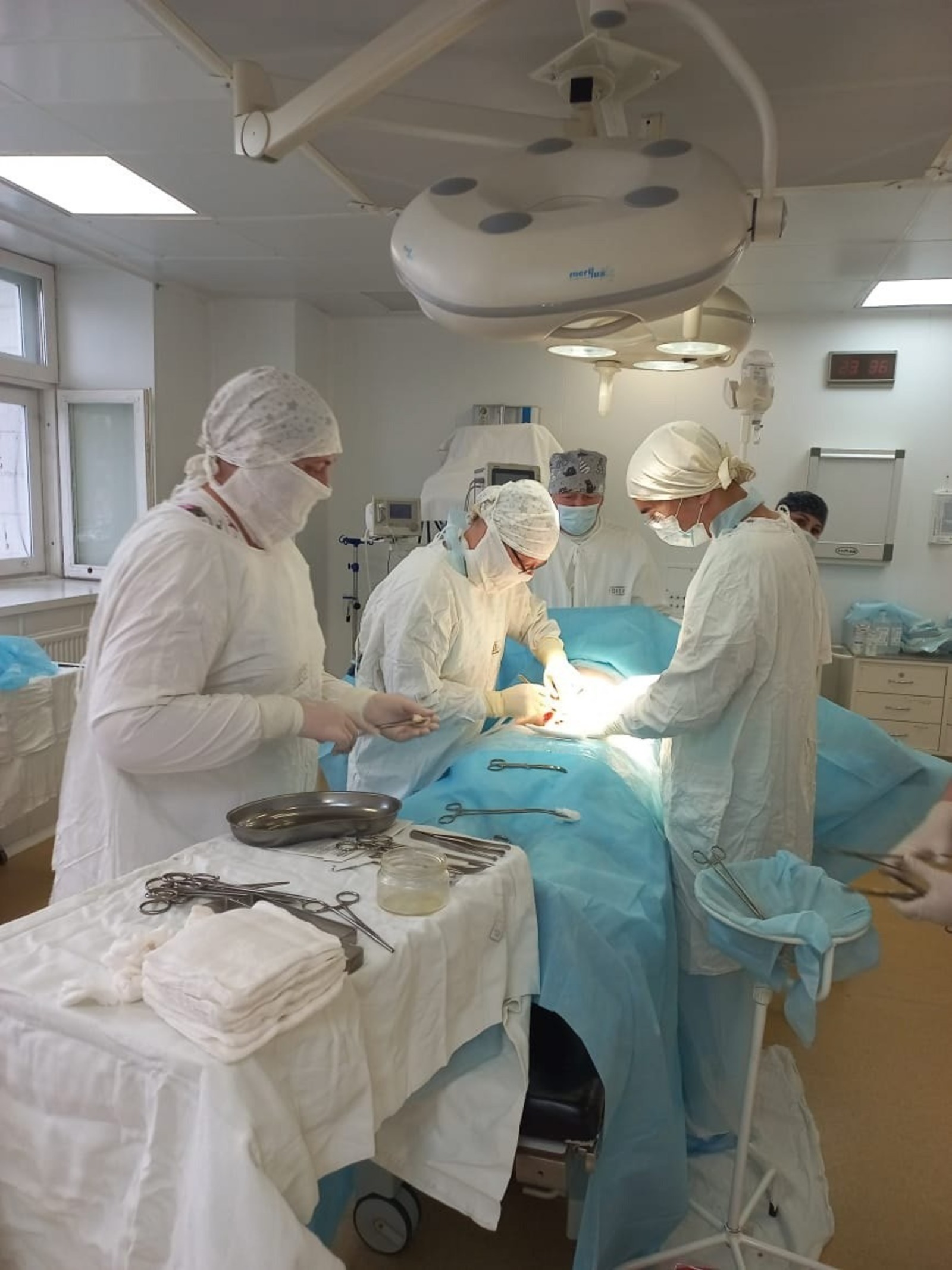 Во время небольшой интраоперационной паузы подошел хирург и операция продолжилась. Был удален воспалённый червеобразный отросток слепой кишки.