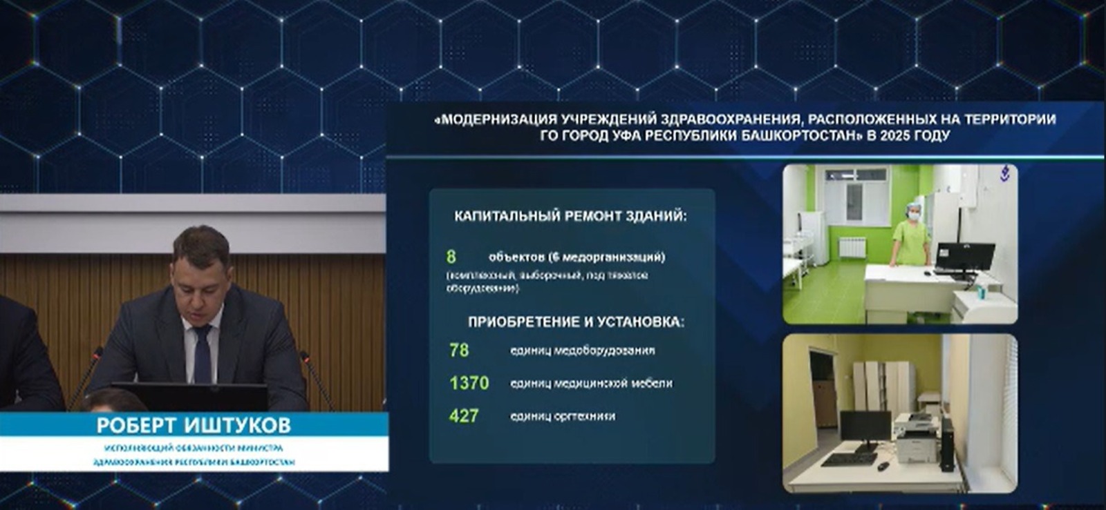 «Программу утвердили до 2030 года. В рамках федеральной программы приводим в порядок сельские поликлиники. А Уфа не попадала в программу. Поэтому мы создали свою республиканскую программу. До конца реализации программы должны получить реальный эффект», — сказал Радий Хабиров после доклада Роберта Иштукова.