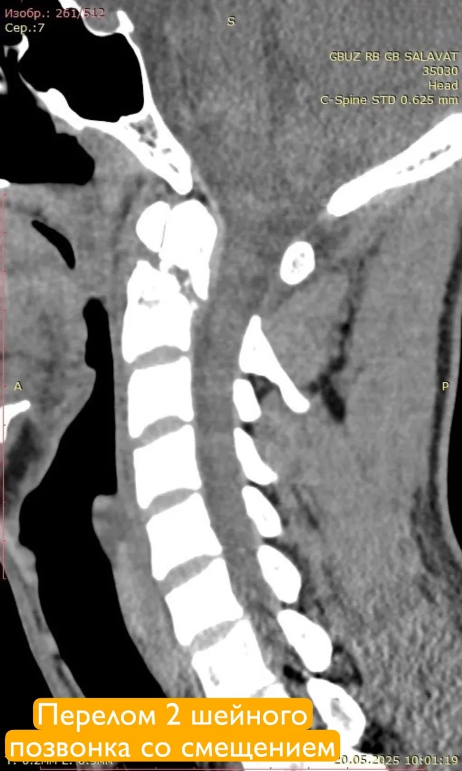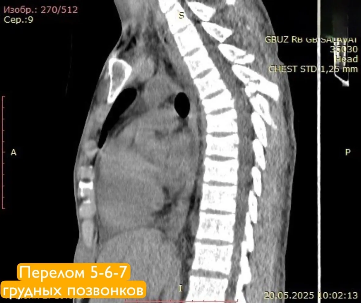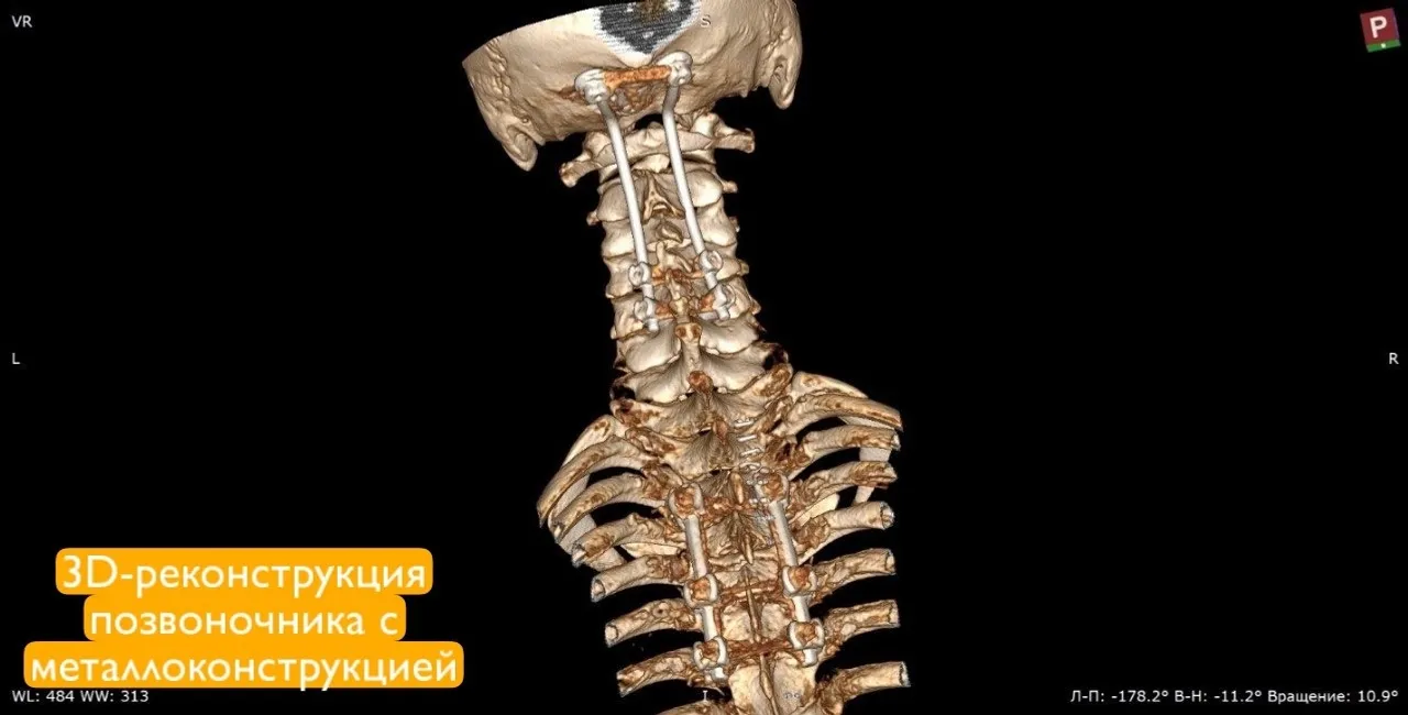 У пациента диагностировали сочетанную травму: ушиб головного мозга, переломы шейных и грудных позвонков, а также ребер и ушиб легких. Особенно серьезной была ситуация с переломами 1 и 2 шейных позвонков со смещением. Травма могла привести к острому сдавлению спинного мозга и угрожать жизни молодого человека. Такие переломы часто приводят к инвалидизации, вплоть до полного обездвиживания.