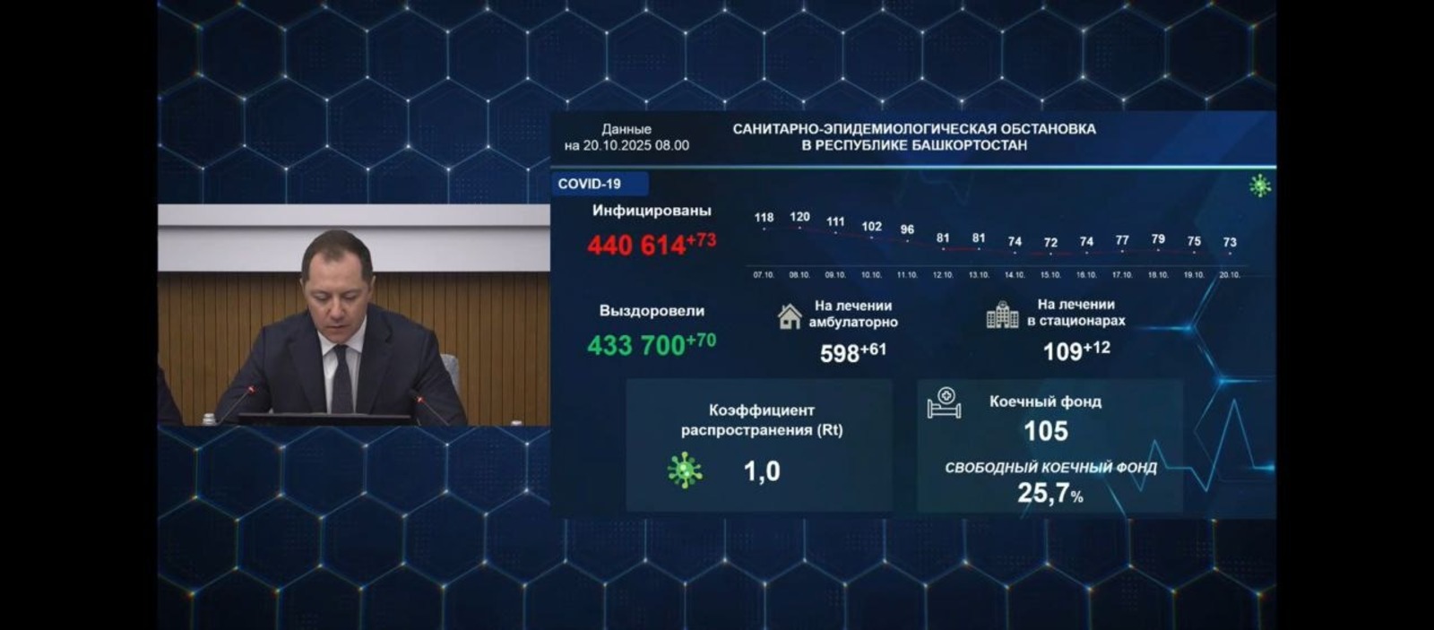 В Башкирии за минувшие сутки выявлено 73 случая заболевания новой коронавирусной инфекцией. Данные на оперативном совещании правительства в ЦУРе сообщил министр здравоохранения республики Айрат Рахматуллин.