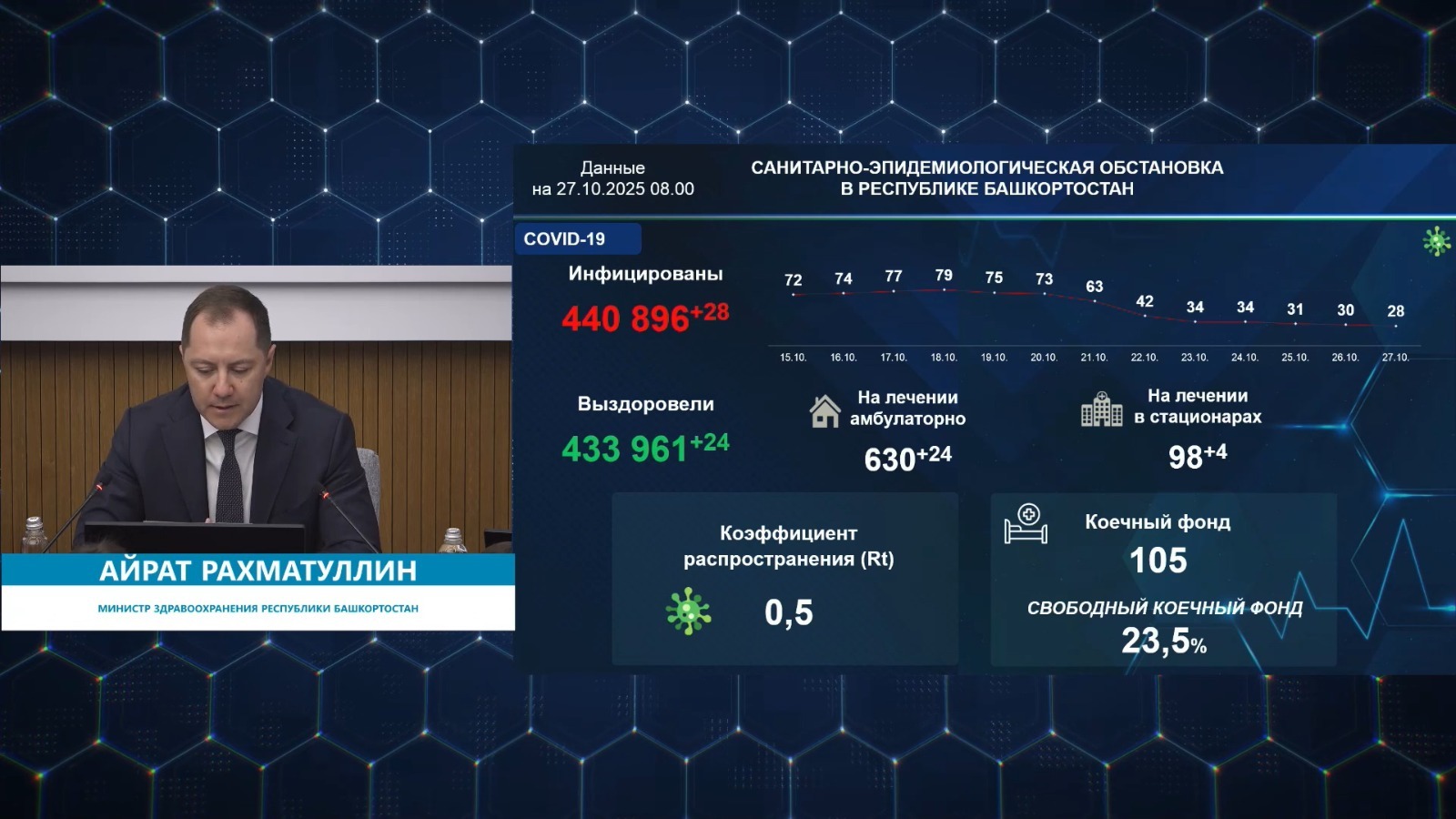 В Башкирии за минувшие сутки выявлено 28 случаев заболевания новой коронавирусной инфекцией. Это существенно меньше, чем неделю назад. Напомним, 20 октября ковид диагностировали у 73 человек.