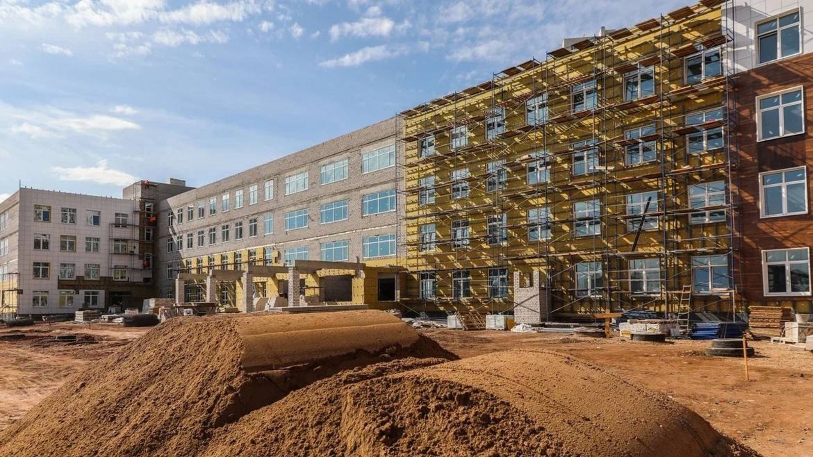По словам главы республиканского минстроя, сейчас на объекте ведутся электромонтажные, фасадные, отделочные работы. Завершается установка окон и одновременно идёт благоустройство территории.