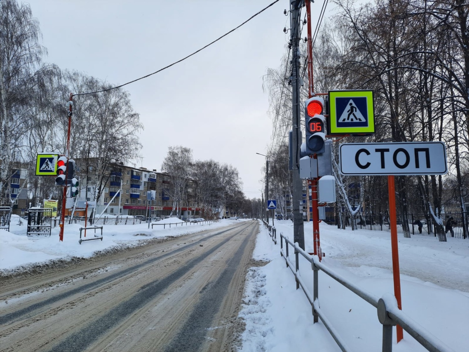 Еще два светофорных объекта возле школы № 23 на улице Строителей оснастили дополнительными секциями для пешеходов. Также выполнили освещение двух пешеходных переходов вблизи школ № 4 и № 10.