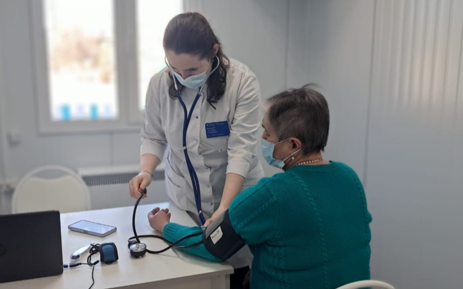 Всё это есть в новом помещении, также, как оборудование и мебель. Имеются помещение для приема пациентов, кабинет терапевта, смотровая, прививочная, процедурная, дневной стационар, санузел и помещение для хранения медикаментов. Для пожилых и маломобильных жителей на входе имеется пандус.