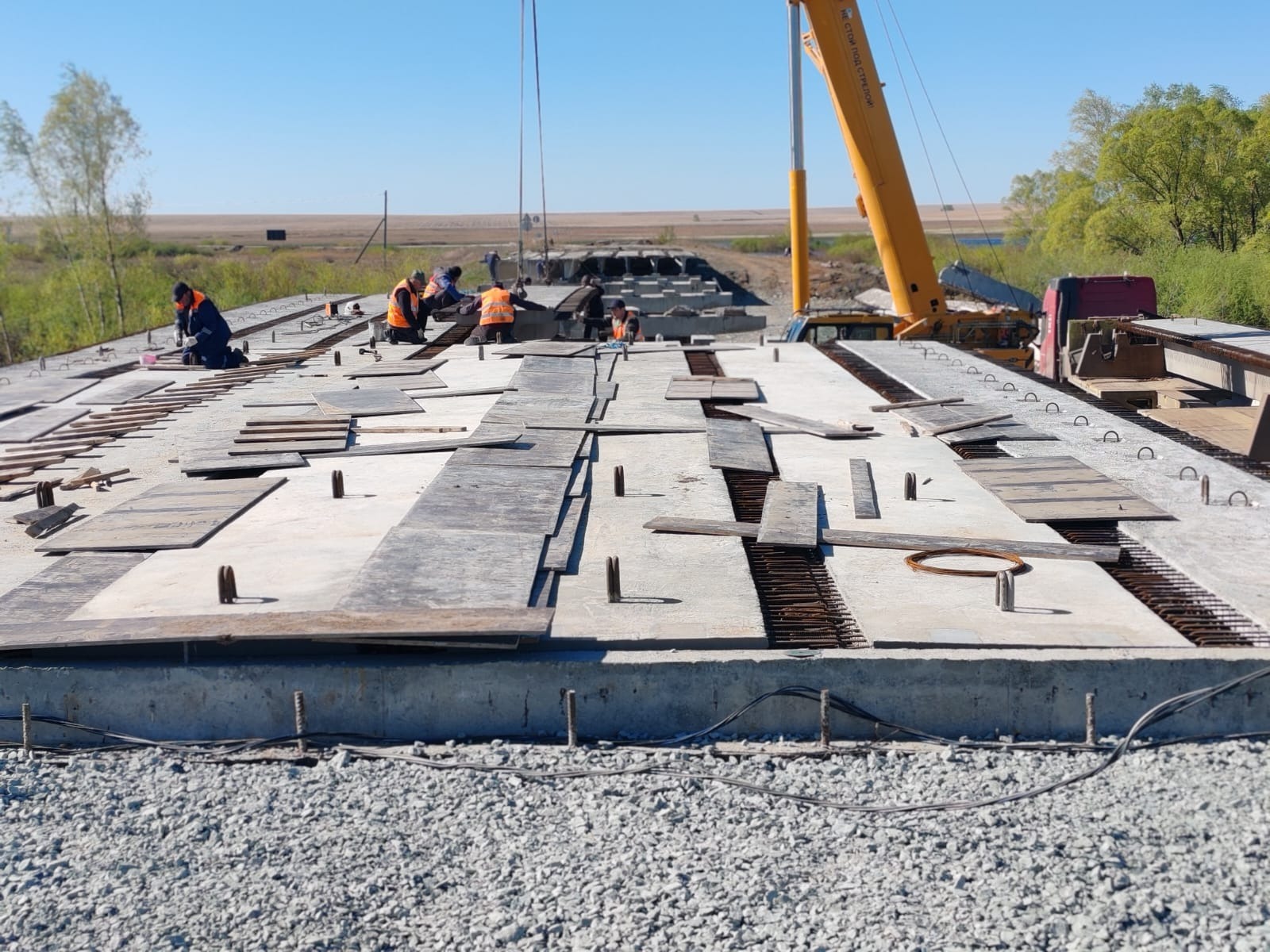 В Хайбуллинском районе на мосту через реку Таналык смонтировали 42 балки. Капитальный ремонт моста выполняют в рамках нацпроекта «Инфраструктура для жизни».
