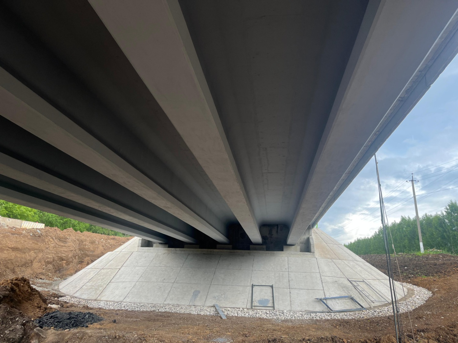 Дорожники обновили железобетонную конструкцию, уложили новое асфальтобетонное покрытие на мосту и подходах, выполнили устройство водосбросных сооружений. Сейчас ведется монтаж деформационных швов и антикоррозийная обработка металлических элементов. Затем на мосту установят барьерное и перильное ограждения.