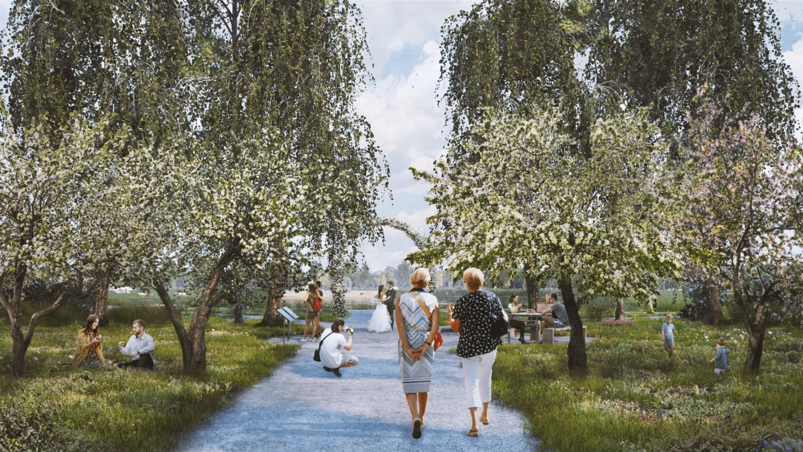 В саду есть родник и несколько водоёмов, их берега будут благоустроены для комфортного отдыха. В саду появится событийная зона, также запланирована высадка новых деревьев, декоративных кустов и цветов.
