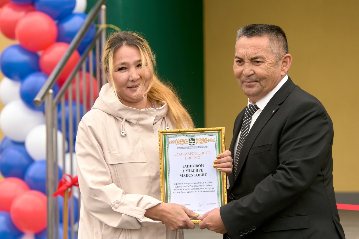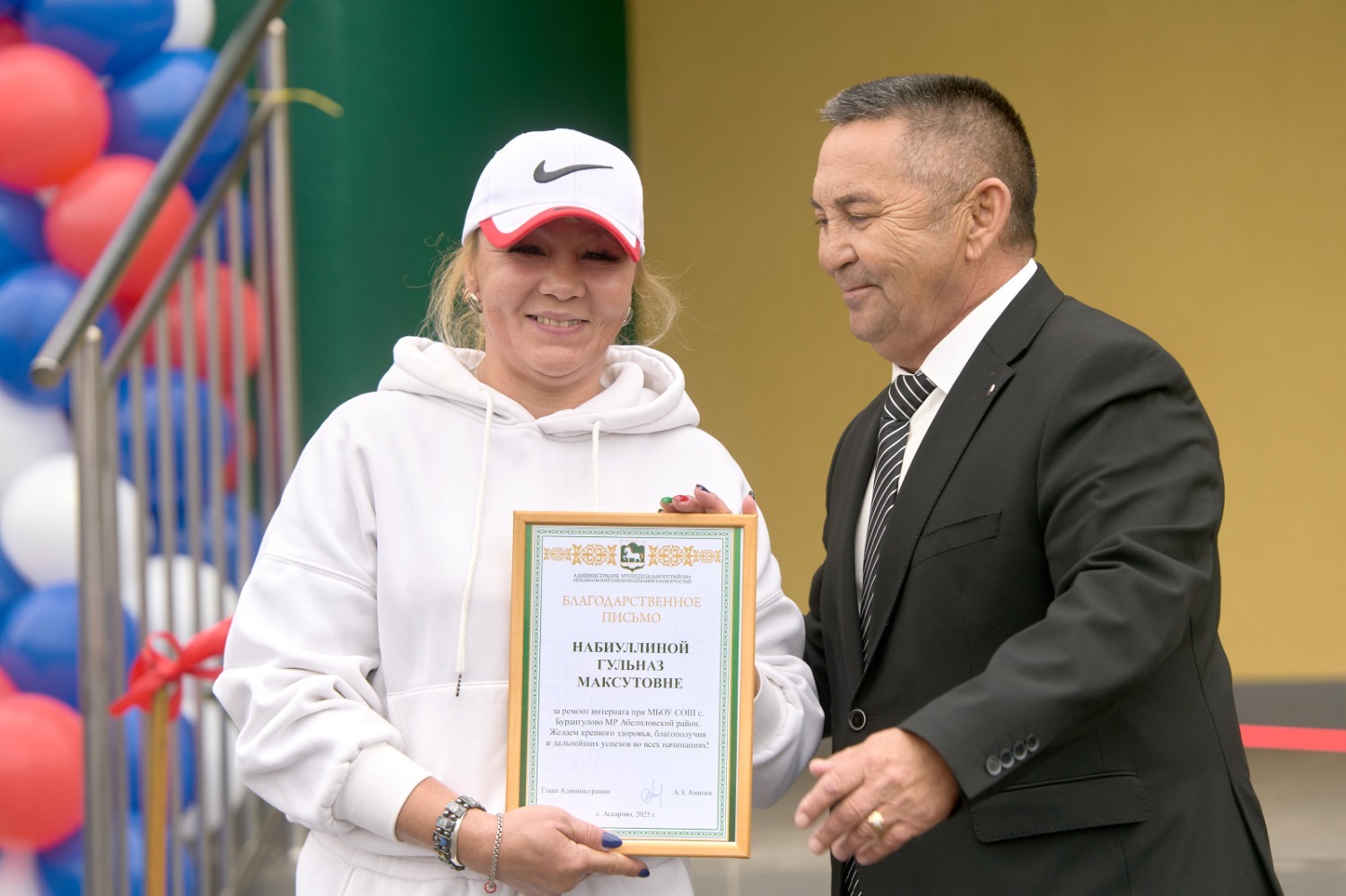 В этот день бурангуловцы отметили сразу три радостных события. Помимо открытия нового интерната, больницы и детского сада, школа получила новый автобус. Его торжественно вручил в Уфе Глава республики Радий Хабиров. Также в школе начал работу кабинет центра «Точка роста».