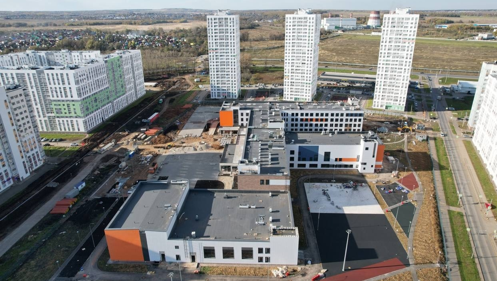 На сегодняшний день на площадке ведутся строительно-монтажные работы, благоустройство территории, монтаж наружного освещения. Вместе с тем специалисты обустраивают спортивное ядро с искусственным покрытием.