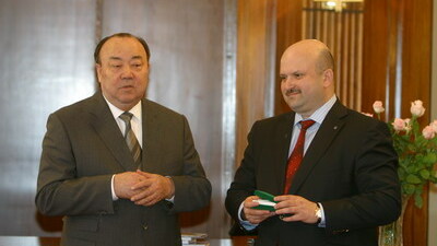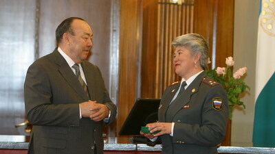 Церемония награждения состоялась по традиции в Доме республики. Глава региона Муртаза Рахимов благодарил за хорошую работу лучших в своей профессии. За трудовые успехи вручались ордена, почетные грамоты и присваивались почетные звания. Награды федерального и регионального значения получили сегодня более 50 человек. Первыми чествовали тех, кто был награжден указами Президента Российской Федерации. Вместе с Шаурой Сарбаевой заслуженным работником культуры РФ стал также директор Уфимской детской музыкальной школы N 4 Александр Чернов. Звание "Заслуженный врач РФ" присвоено генеральному директору уфимского ЗАО "Косметологическая лечебница" Владимиру Капулеру. А представитель Кугарчинского района стал заслуженным работником физической культуры РФ. Это председатель комитета по физической культуре, спорту и туризму районной администрации Раил Аксанов.