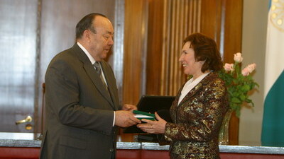 - Эта награда очень дорога мне. В ней - труд всего нашего коллектива преподавателей и, конечно, учащихся. Наш колледж считается одним из лучших средних специальных музыкальных учреждений России, а это уже не только наша заслуга. Благодаря поддержке руководства республики в колледже созданы очень комфортные условия. Есть хорошо оснащенные классы, прекрасный спортивный зал, а главное - музыкальные инструменты мировых мастеров. Отдача - соответствующая. Ежегодно около ста учащихся нашего колледжа становятся лауреатами престижных конкурсов - международных, всероссийских, республиканских, - с такими словами обратилась к Президенту республики Муртазе Рахимову директор Уфимского среднего специального музыкального колледжа Шаура Сарбаева, которая сегодня была удостоена звания "Заслуженный работник культуры Российской Федерации".