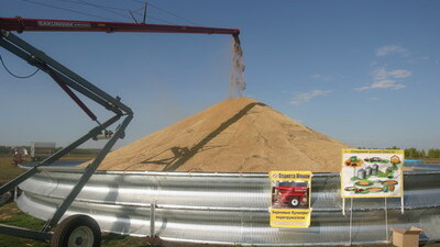 Здесь же главе региона продемонстрировали образцы агротехнического оборудования, производимого компанией "Планета Юнион" по канадской технологии. Сегодня здесь проходит тестовая эксплутация этого оборудования - аграриям показали временные зернохранилища, которые позволяют организовать хранение зерна в том случае, если зерноток находится на приличном расстоянии и доставить урожай туда затруднительно. Кроме того, компания предлагает зерновой бункер-перегружатель, зерновой транспортер. Представители компании обратились к главе республики с предложением организовать производство этого оборудования и в Башкортостане.