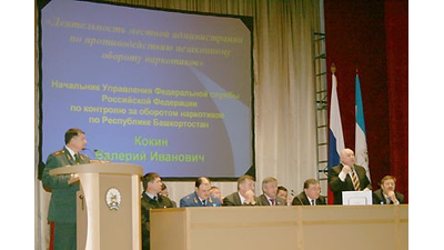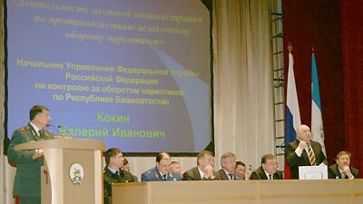 С подробным докладом на тему «Деятельность местной администрации по противодействию незаконному обороту наркотиков» выступил начальник УФСКН России по Республике Башкортостан генерал-лейтенант полиции Валерий Кокин.