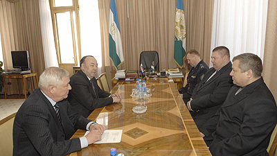 13 апреля в Доме Республики Президент Башкортостана Муртаза Рахимов провел рабочую встречу с начальником Пограничного управления ФСБ РФ по Саратовской и Самарской областям Александром Костюченковым. В Башкортостан он прибыл с целью знакомства с работой пограничного пункта пропуска в Уфе.