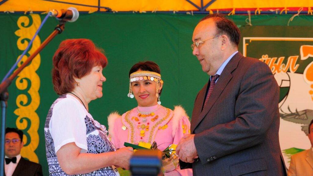 Президент Республики Башкортостан Муртаза Рахимов в ходе посещения праздника «Сабантуй - 2010» в Куюргазинском районе наградил отличившихся работников района.