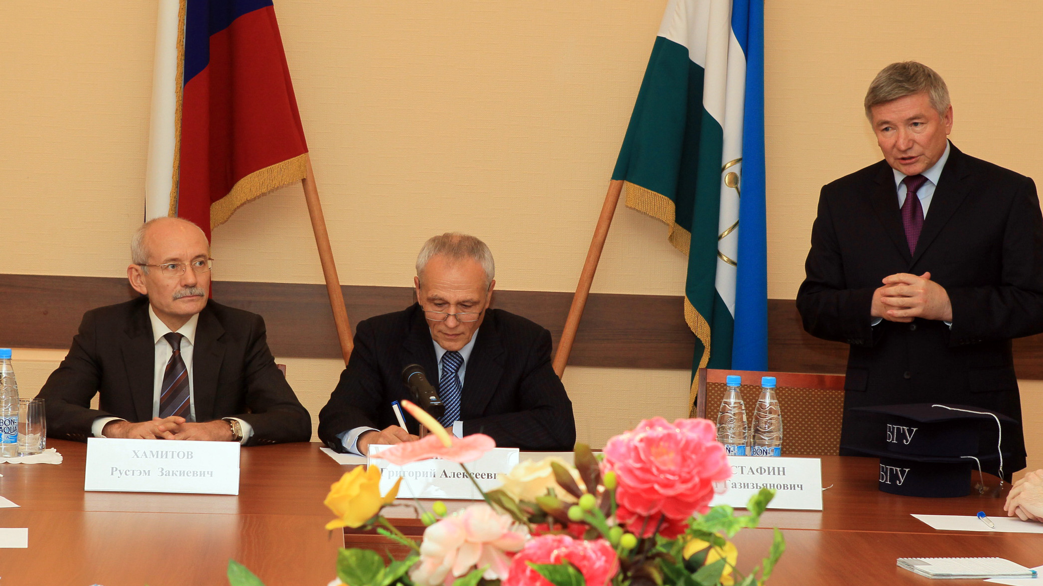 В Башкирском государственном университете сегодня прошла встреча Полномочного представителя Президента РФ в Приволжском федеральном округе Григория Рапоты и Президента Башкортостана Рустэма Хамитова со слушателями Малой академии государственного управления (МАГУ).