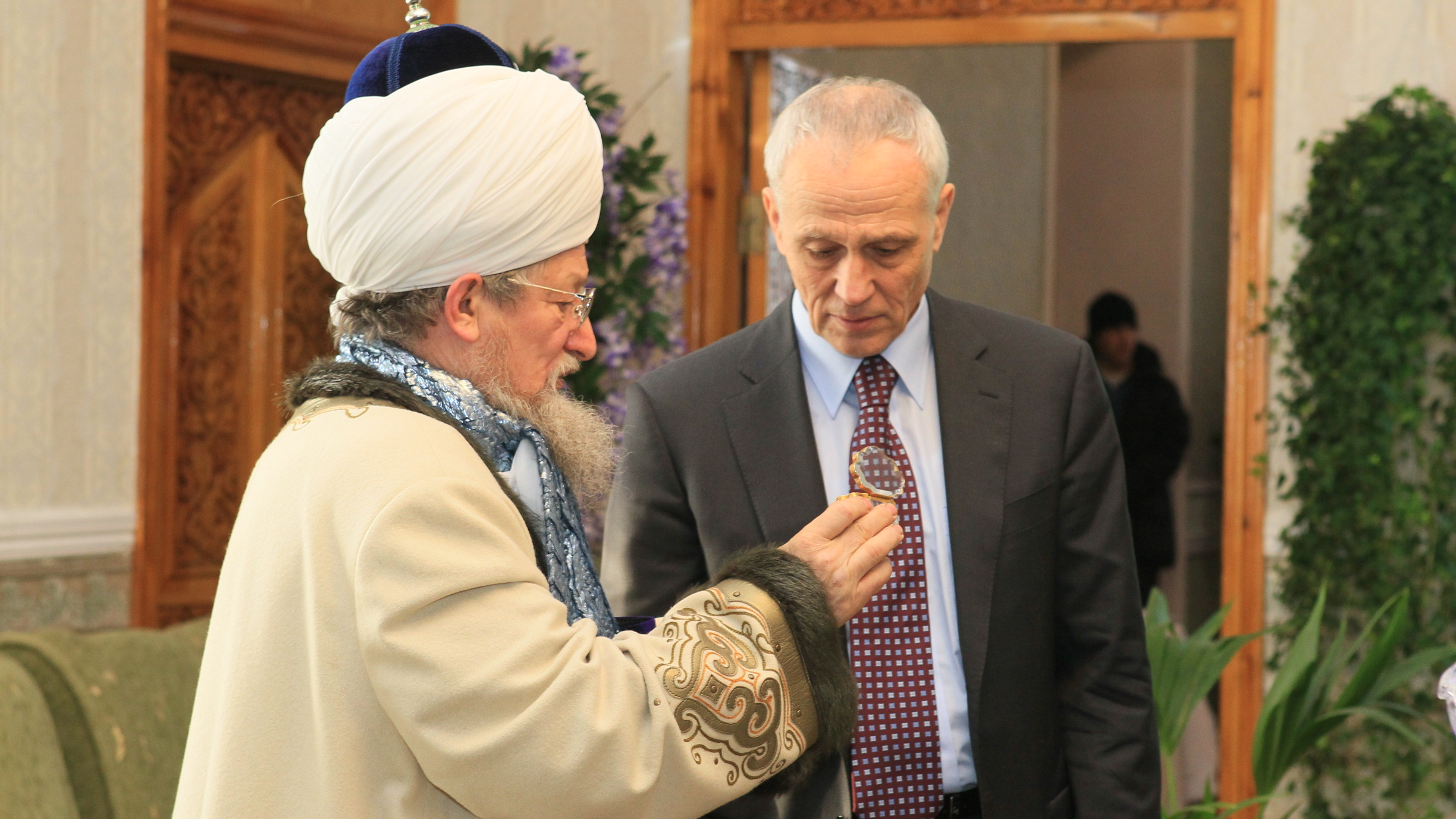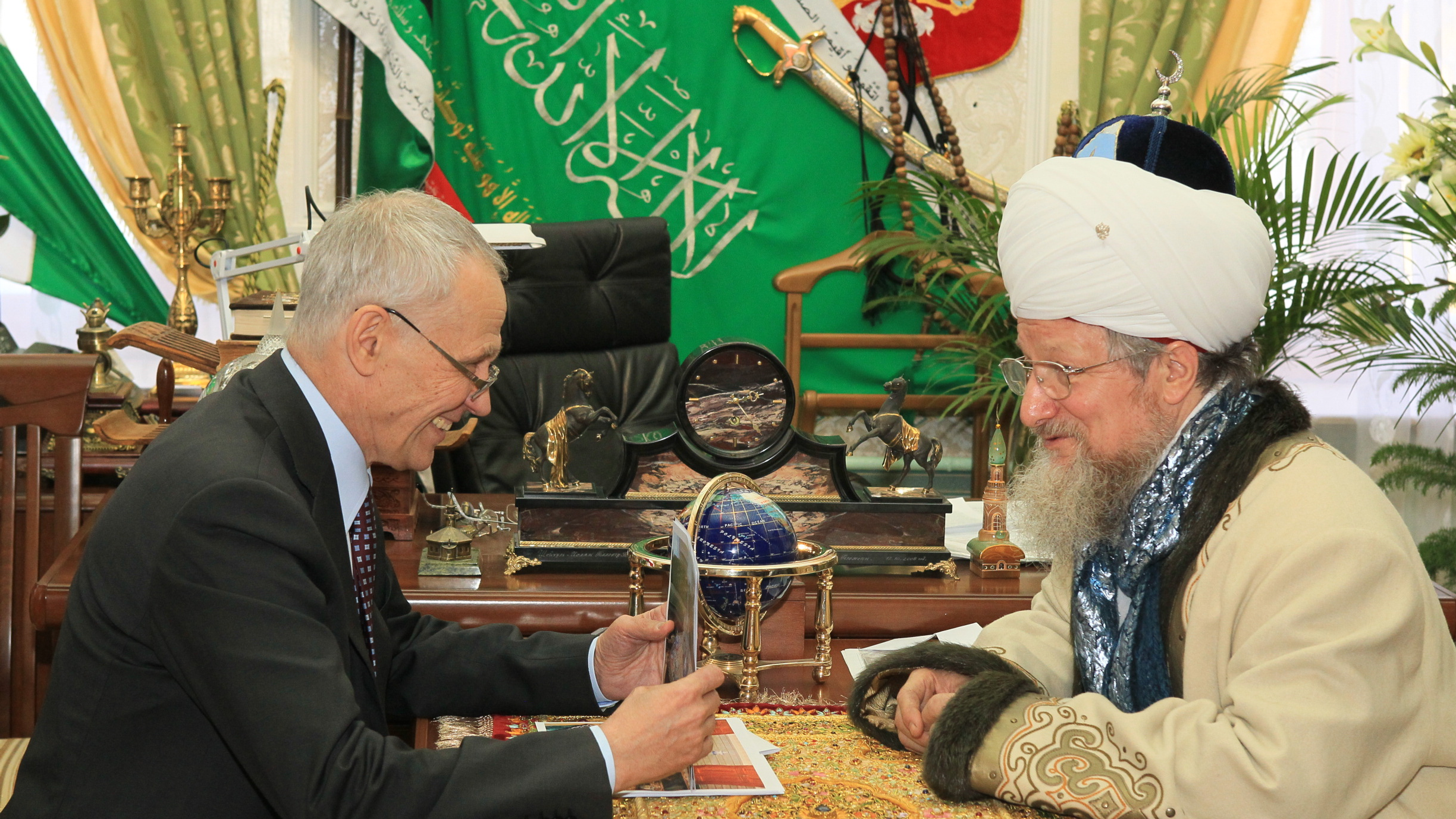 В здании духовного управления полномочный представитель встретился с председателем ЦДУМ России верховным муфтием Талгатом Таджуддином.