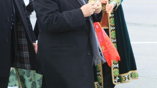 В среду, 23 марта, в Башкортостан прибыл глава Палестинской национальной администрации Махмуд Аббас. В уфимском аэропорту его встречали Руководитель Администрации Президента РБ Анвар Махмутов, представитель МИД России в Уфе Илшат Миндибаев, другие официальные лица. Девушки в башкирском и русском национальных костюмах, по обычаю, преподнесли гостю каравай хлеба и чак-чак.