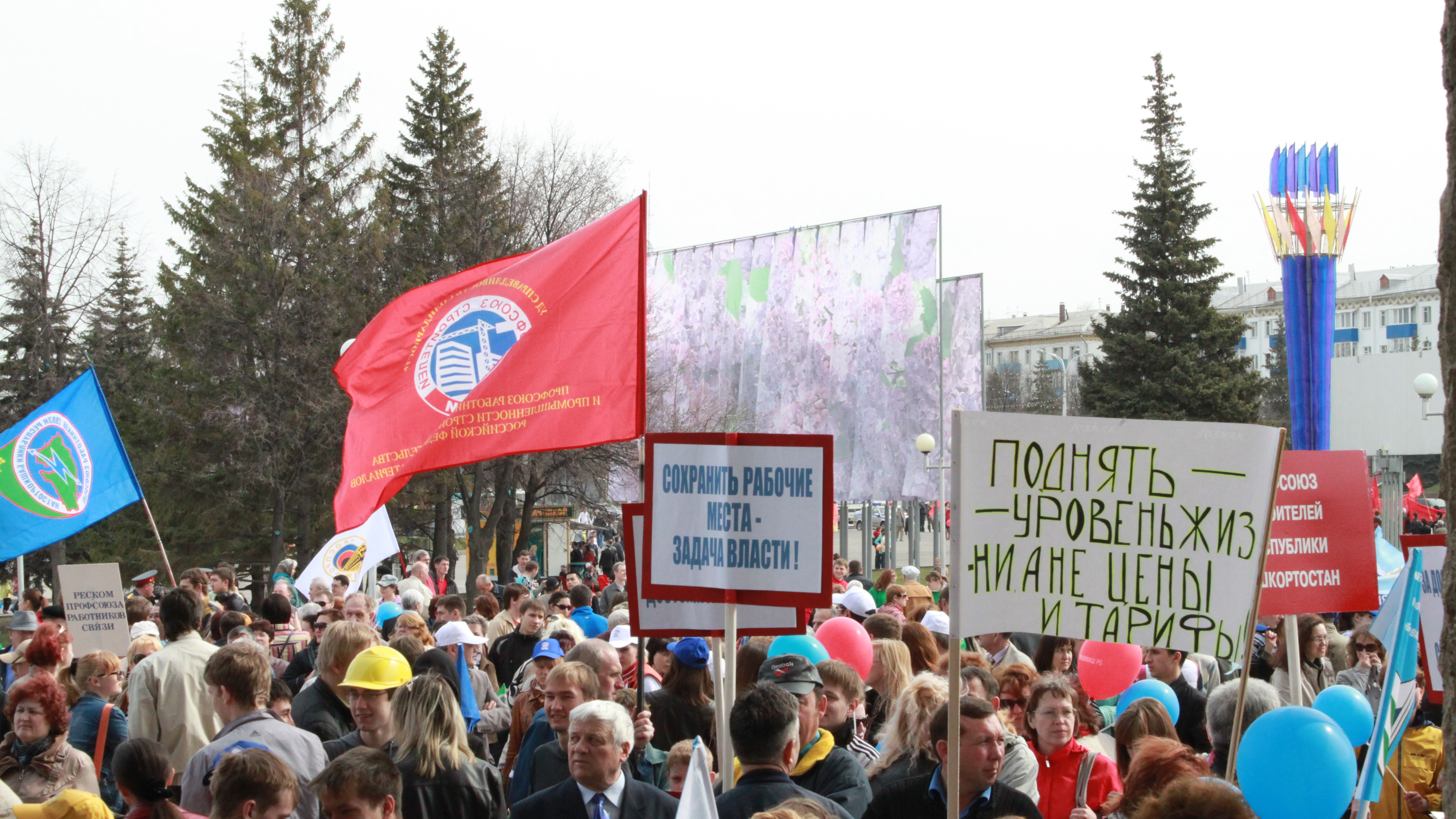 Первомайский митинг профсоюзного актива трудящихся Уфы прошел на площади имени Ленина под лозунгом «За достойные рабочие места и заработную плату!». Сегодня такие акции проводятся по всей стране.