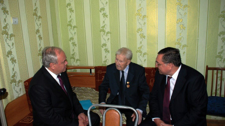 Главный федеральный инспектор по РБ Петр Капишников и спикер республиканского парламента Константин Толкачев пообщались с ветераном, поинтересовались, есть ли проблемы у семьи Соломоновых. Гости пожелали юбиляру крепкого здоровья и вручили подарки - теплый плед и микроволновую печь.