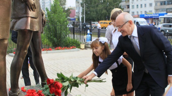 Первым пунктом в маршруте Президента республики Рустэма Хамитова в рамках августовского педсовета в Стерлитамаке стало посещение городского Музея истории системы образования. Он был создан 28 лет назад в гимназии N5. Однако весной этого года все материалы были переданы в среднюю общеобразовательную школу N31 и это неслучайно. На ее территории расположена скульптурная композиция, посвященная первому учителю. Памятник возвели в Год Учителя (2010). Авторы – члены Союза художников РФ и РБ Рустем Хасанов и Радик Хусаинов, а также художник-архитектор Владимир Харжевский. Глава республики возложил цветы к памятнику.