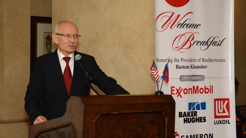 22 июля в связи с визитом Президента Башкортостана в Хьюстоне состоялся бизнес-форум, организованный Российско-Американской торговой палатой, с деловыми кругами штата Техас. Высокий интерес к форуму проявили представители нефтяной, химической, газовой отраслей, финансовых групп. Рустэм Хамитов выступил с презентацией Башкортостана, рассказал об экономических возможностях региона и открытости для инвесторов, ответил на вопросы американских бизнесменов по поводу налоговых льгот и других преференций. Речь шла о возможности реализации в Башкортостане инвестиционных проектов по строительству транспортно-логистических терминалов, открытию медицинских центров, созданию сельскохозяйственных комплексов.