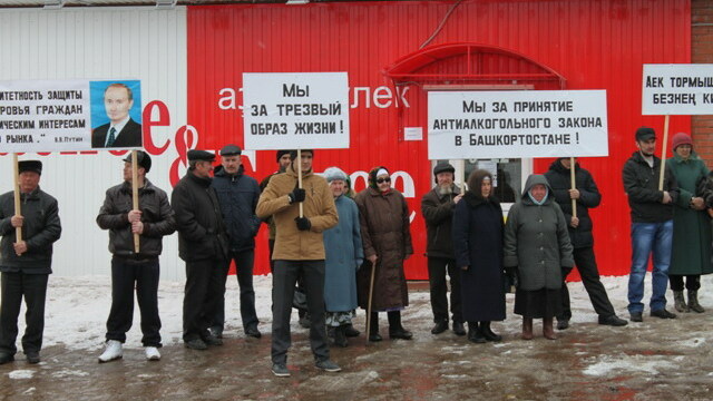 Более 100 жителей села Бураево вышли на санкционированный митинг против открытия алкомаркета напротив местной мечети. Жители села держали плакаты с требованиями исполнения Антиалкогольной Концепции Правительства России и в поддержку принятия антиалкогольного закона в Республике Башкортостан, сообщили в региональном общественном движении «Трезвый Башкортостан».