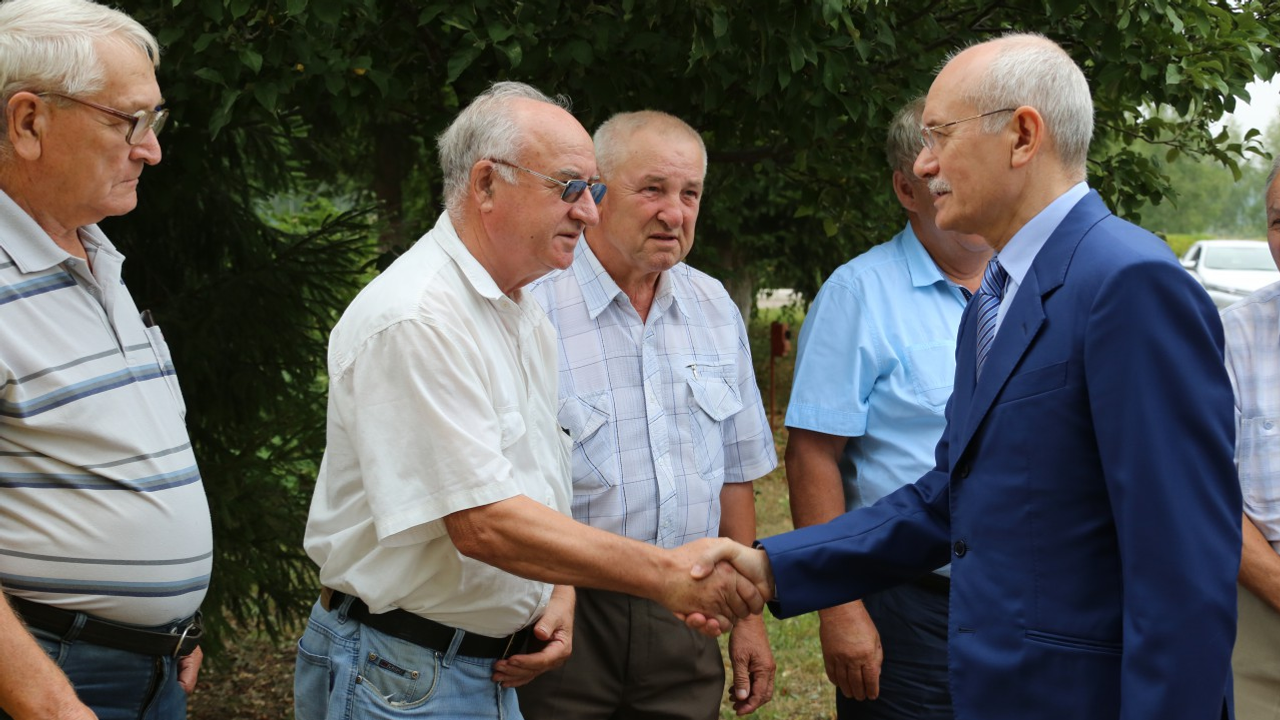 В Куюргазинском районе в деревне Кинья-Абыз Рустэм Хамитов осмотрел музей имени Кинзи Арсланова и встретился с ветеранами труда.