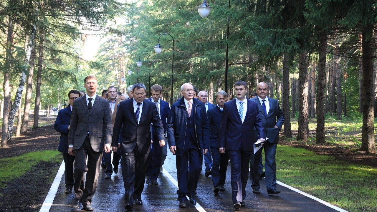 Рустэм Хамитов осмотрел территорию лесопарка, заметно преобразившуюся после проведенных ремонтных работ. В частности, здесь были выполнены расчистка и осветление лесного массива, заасфальтирована дорожно-тропиночная сеть, установлены опоры освещения, обустроена пикниковая зона, а также созданы детская и спортивная площадки.