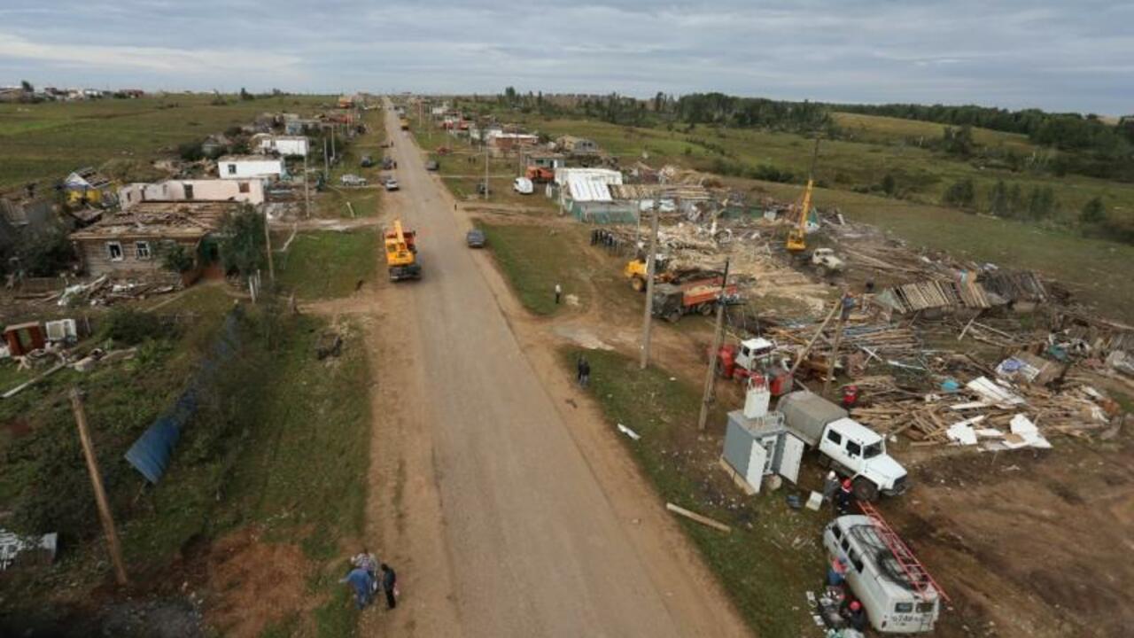 В селе Кариево Краснокамского района Рустэм Хамитов проинспектировал ход восстановительных работ и встретился с жителями. В результате смерча погибло двое и пострадало 39 жителей района.