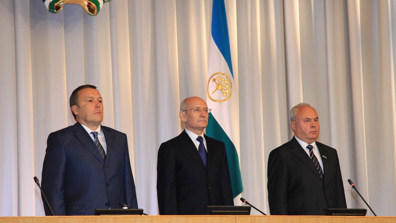 В торжественной церемонии приняли участие депутаты Госсобрания - Курултая РБ, члены Правительства Башкортостана, судьи Конституционного, Арбитражного и Верховного судов, представители трудовых коллективов и общественных организаций.
