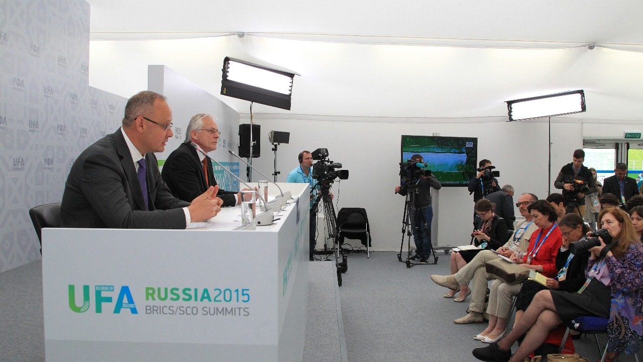 В Уфе прошел первый брифинг в открывшемся к международным саммитам пресс-центре.
