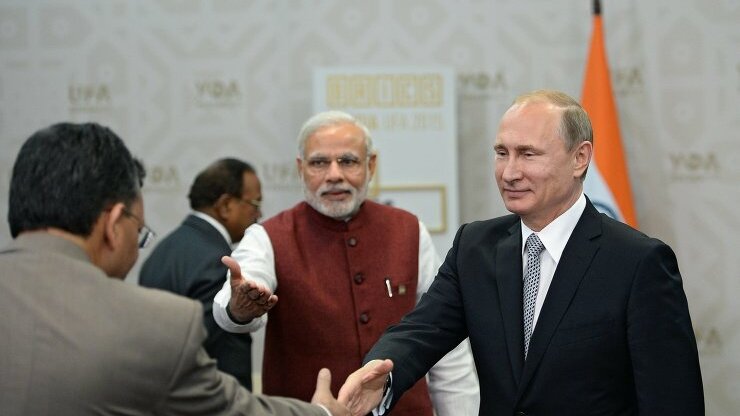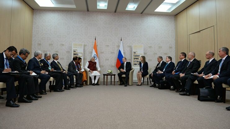 Встреча Путина и Моди прошла в Уфе, куда президент России и индийский премьер прибыли для участия в саммитах ШОС и БРИКС. Мероприятия в рамках этих двух встреч на высшем уровне продлятся в течение трех дней начиная с 8 июля.