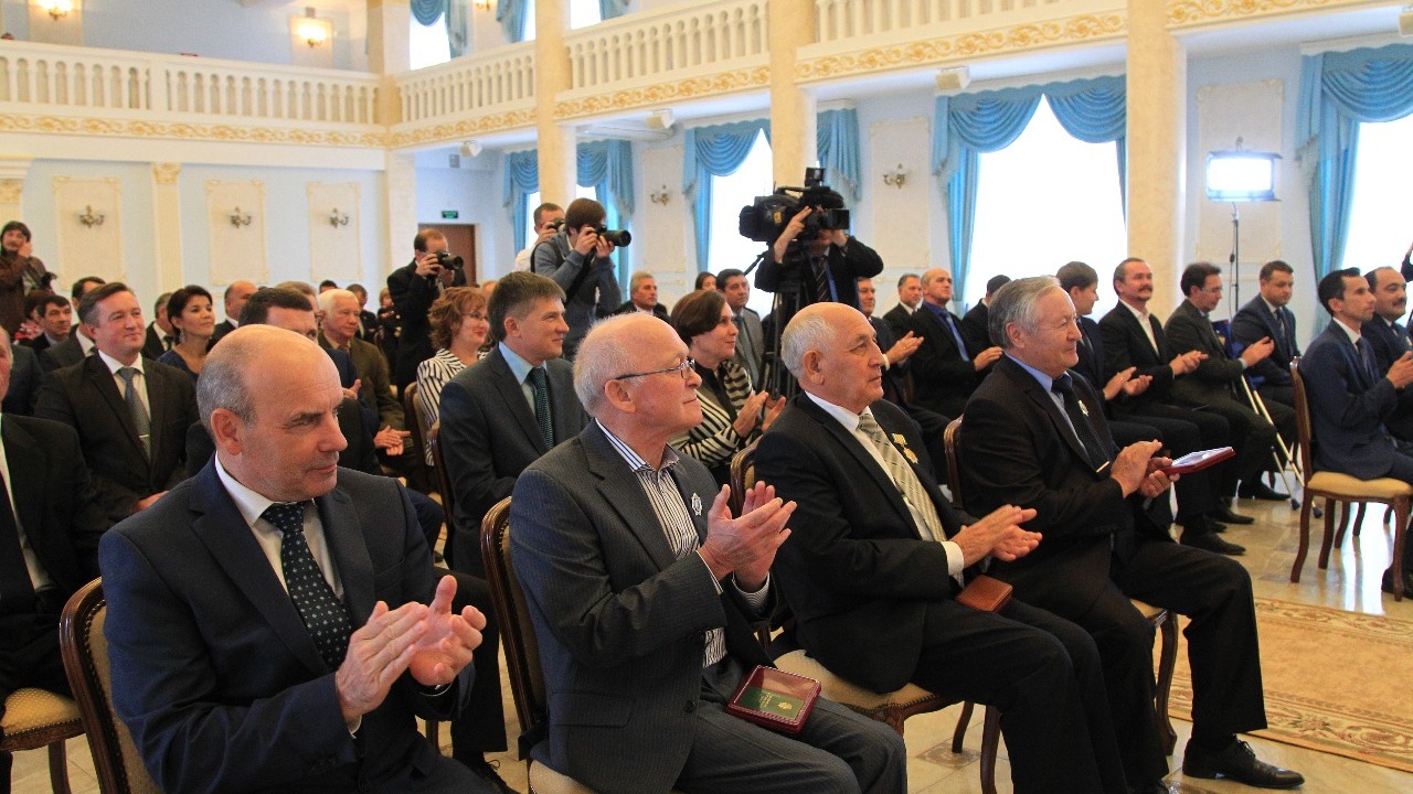 УФА, 3 сен 2015. /ИА «Башинформ», Илья Спиридонов/. 3 сентября в Уфе Глава Башкортостана Рустэм Хамитов вручил государственные награды Республики Башкортостан. Орденами, знаками отличия, почётными грамотами и званиями отмечены профессиональные достижения 45 работников промышленности, энергетики, строительства, транспорта, жилищно-коммунального хозяйства, торговли и общественного питания, государственной службы, муниципального управления, правоохранительных органов, здравоохранения, культуры и искусства.