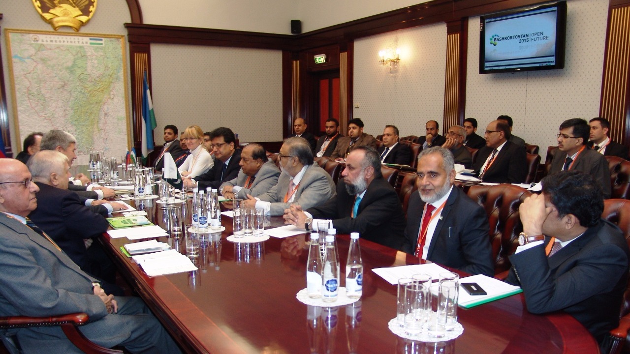 УФА, 14 сен 2015. /ИА «Башинформ», Арина Рахимкулова/. В конференц-зале Полномочного представительства Башкортостана при Президенте России прошла встреча с делегацией Исламской Республики Пакистан. Большая группа представителей деловых кругов этой страны прибыла в Москву с недельным визитом для установления связей с российскими производителями и выразила большой интерес к сотрудничеству с Башкортостаном, сообщила руководитель пресс-центра Полномочного представительства РБ в Москве Гульчачак Ханнанова.