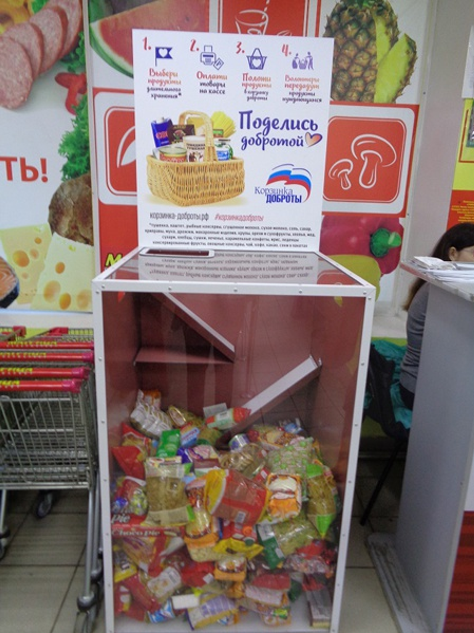 УФА, 3 июн 2016. /ИА «Башинформ», Галия Набиева/. В Башкирии «Корзинка доброты» собрала более двух тонн продуктов. Партийный проект реализуется на территории Башкортостана чуть больше двух недель. В 69 магазинах региона ведется сбор продуктов питания.