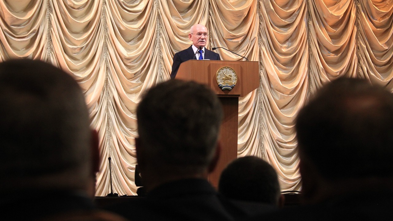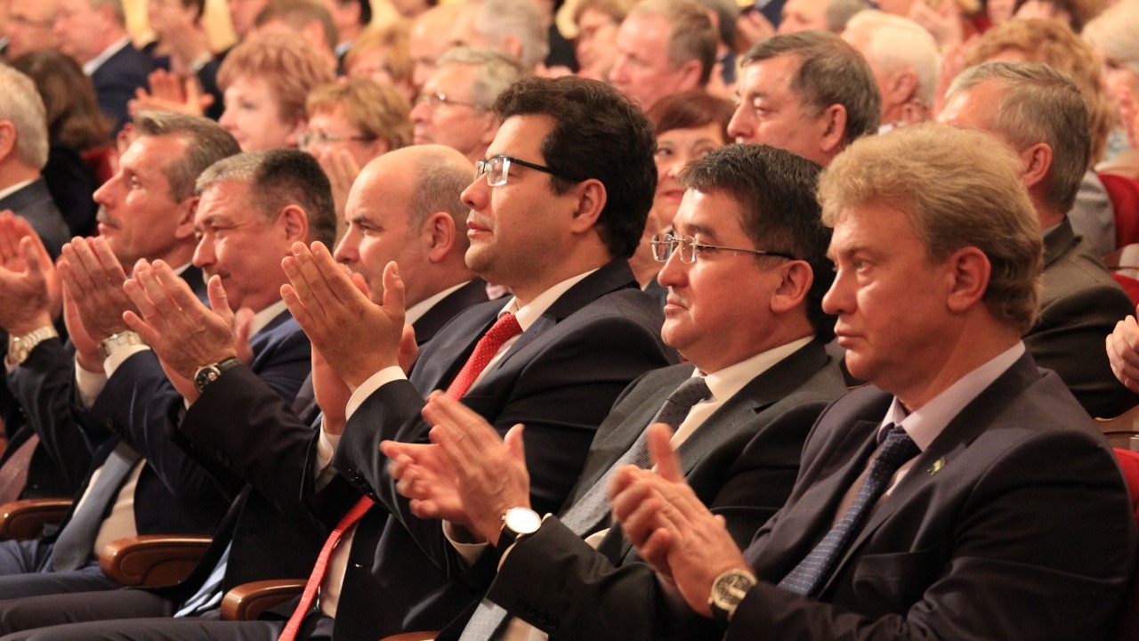 УФА, 6 окт 2016. /ИА «Башинформ», Александр Смирнов/. 6 октября в Уфе Глава Башкортостана Рустэм Хамитов выступил на торжественном собрании, посвященном Дню Республики, которое состоялось в Башкирском государственном театре оперы и балета.