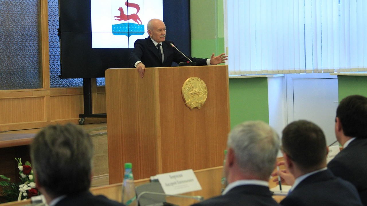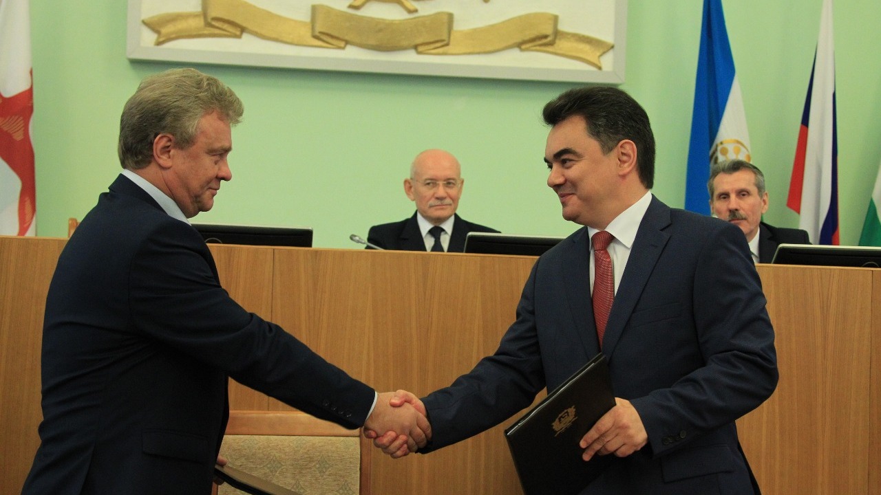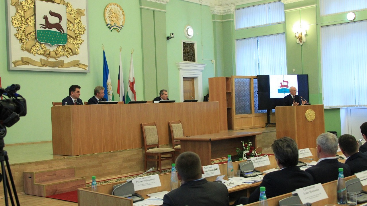 УФА, 25 окт 2016. /ИА «Башинформ», Александр Смирнов/. 25 октября в Уфе Глава Башкортостана Рустэм Хамитов выступил на заседании Совета городского округа город Уфа. Он поздравил Ирека Ялалова с избранием на должность главы городской администрации и обозначил перспективные задачи, стоящие перед мэрией Уфы по развитию столицы республики.