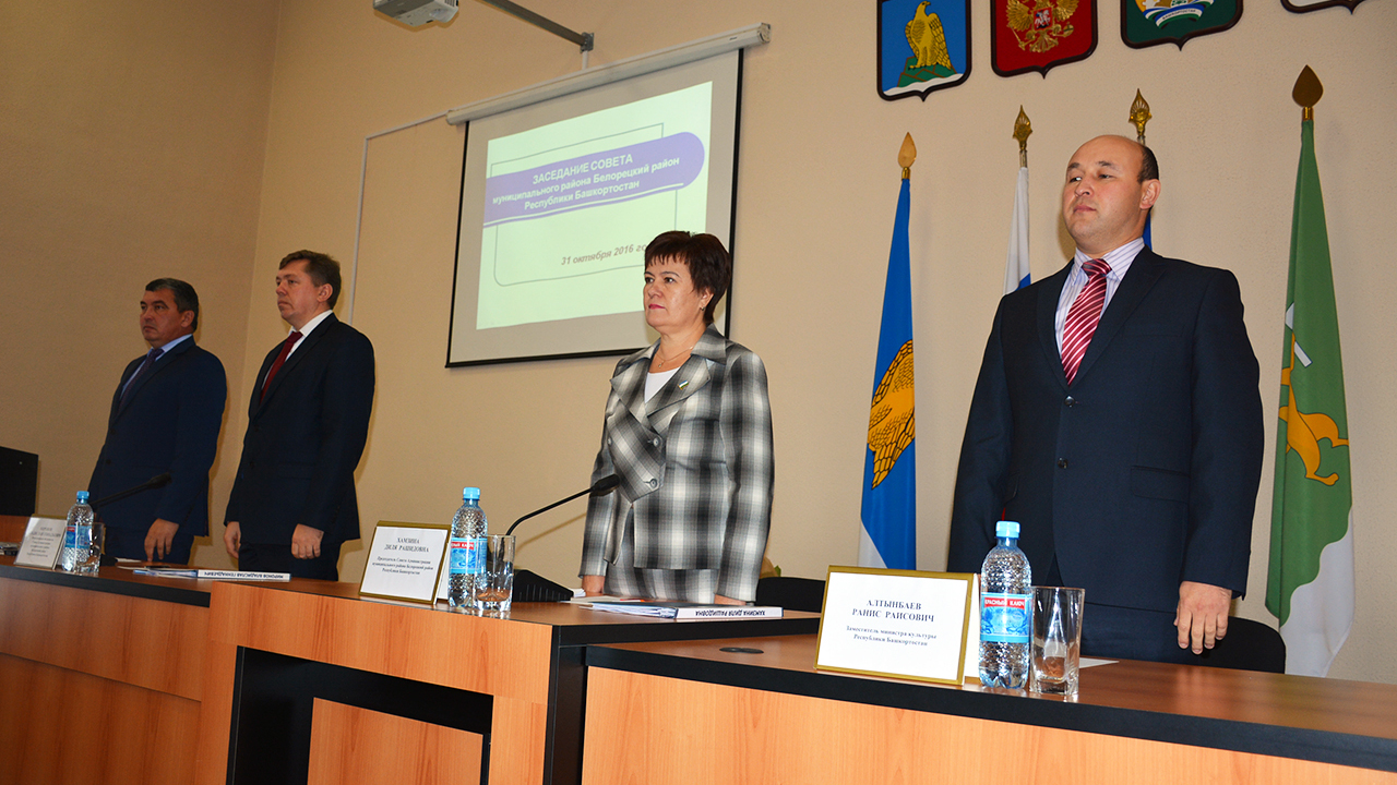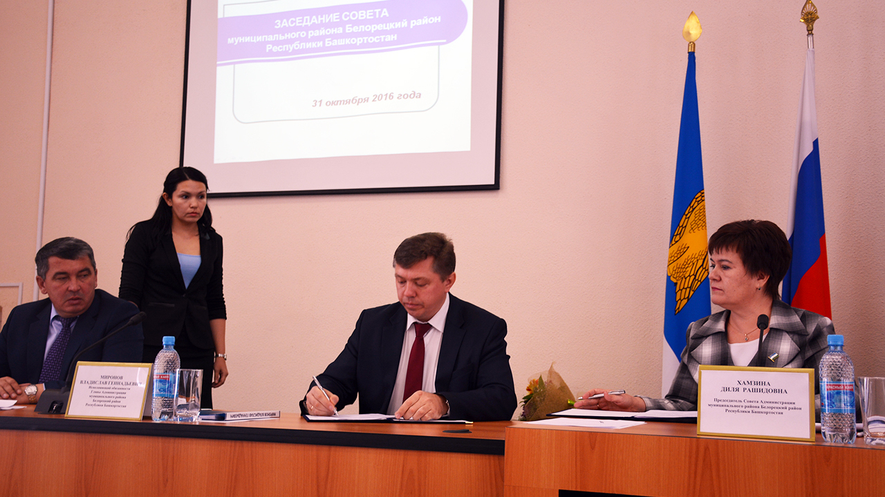 УФА, 31 окт 2016. /ИА «Башинформ», Алим Фаизов/. На прошедшем сегодня заседании Совета Белорецкого района рассмотрен вопрос о назначении главы администрации муниципалитета. В работе заседания приняли участие первый заместитель министра сельского хозяйства РБ Азат Зиганшин, заместитель министра культуры РБ Ранис Алтынбаев, главный советник Управления Главы РБ по взаимодействию с муниципальными образованиями Рустам Рахмангулов, депутат Государственного Собрания - Курултая РБ Юрий Щевелёв, председатель Совета Белорецкого района Диля Хамзина, главы городского и сельских поселений Белорецкого района, руководители предприятий и организаций района.