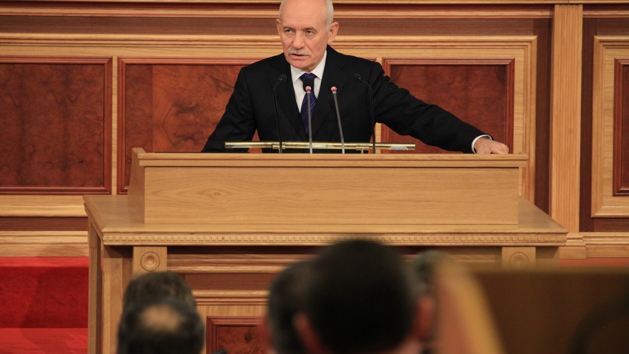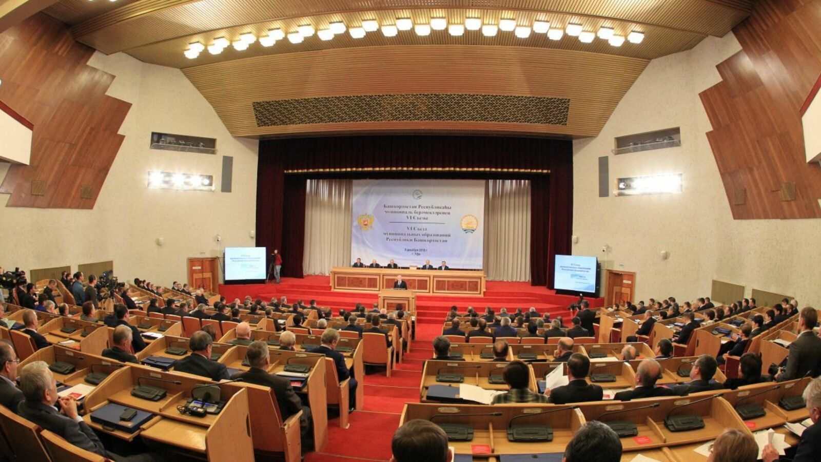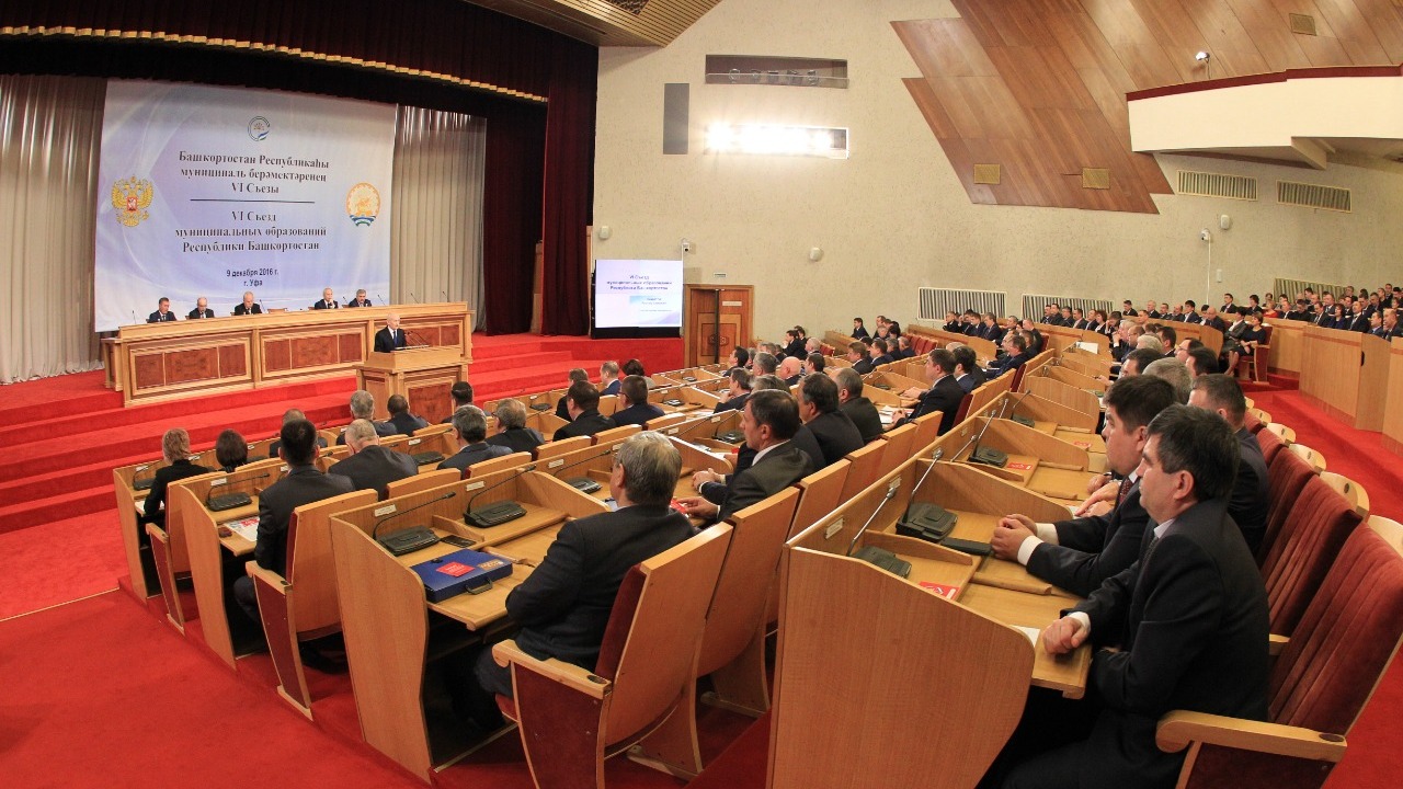 УФА, 9 дек 2016. /ИА «Башинформ», Александр Смирнов/. 9 декабря в Доме Государственного Собрания – Курултая республики Глава Башкортостана Рустэм Хамитов выступил на пленарном заседании VI Съезда муниципальных образований РБ.