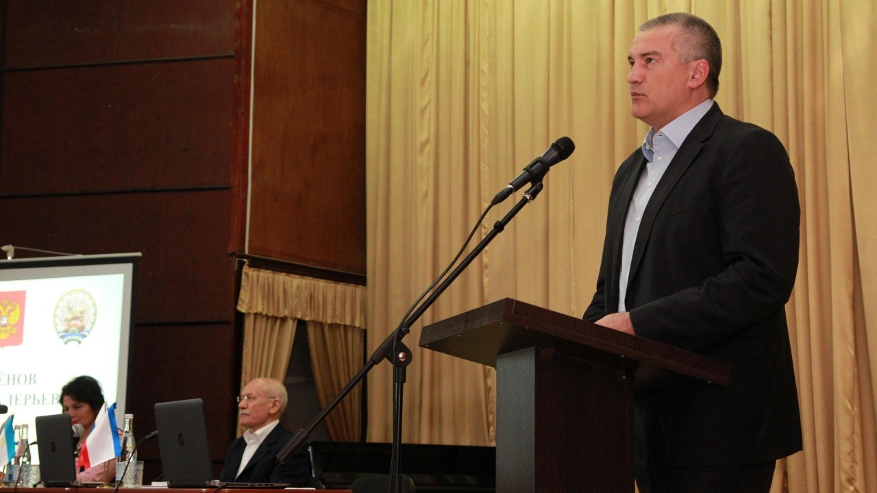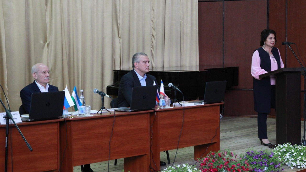 УФА, 8 июл 2017. /ИА «Башинформ»/. Глава Башкортостана Рустэм Хамитов и Глава Крыма Сергей Аксёнов в Белогорске выступили на пленарном заседании Всероссийской научно-практической конференции «Присягая России: Башкортостан и Крым в панораме веков», посвящённой вхождению двух республик в состав России.